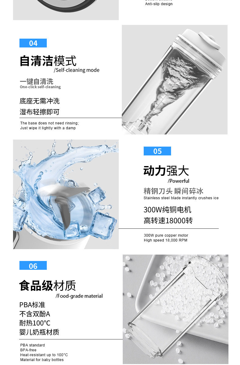 | Fruit pulp residue box capacity | Juicer portable small size 500ml residue-free, smooth and delicate |