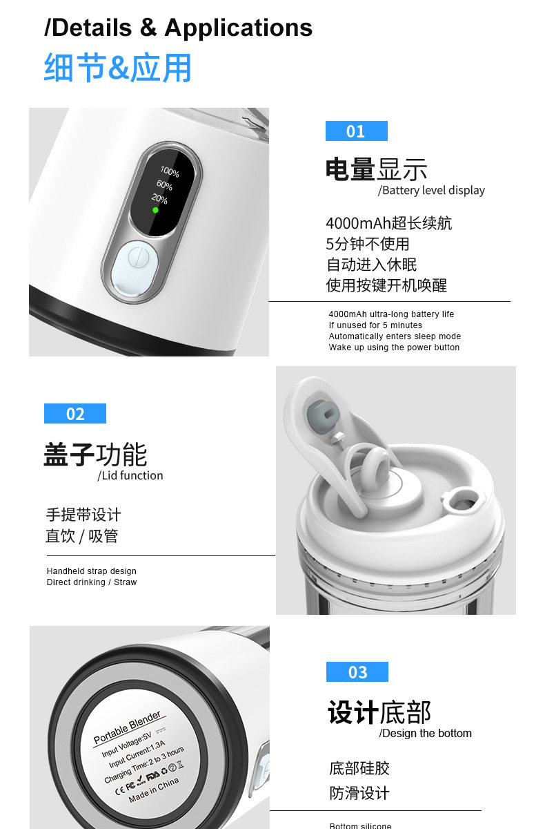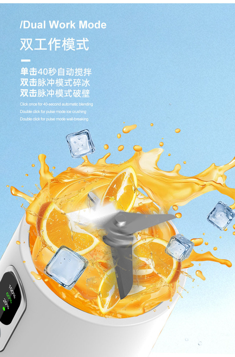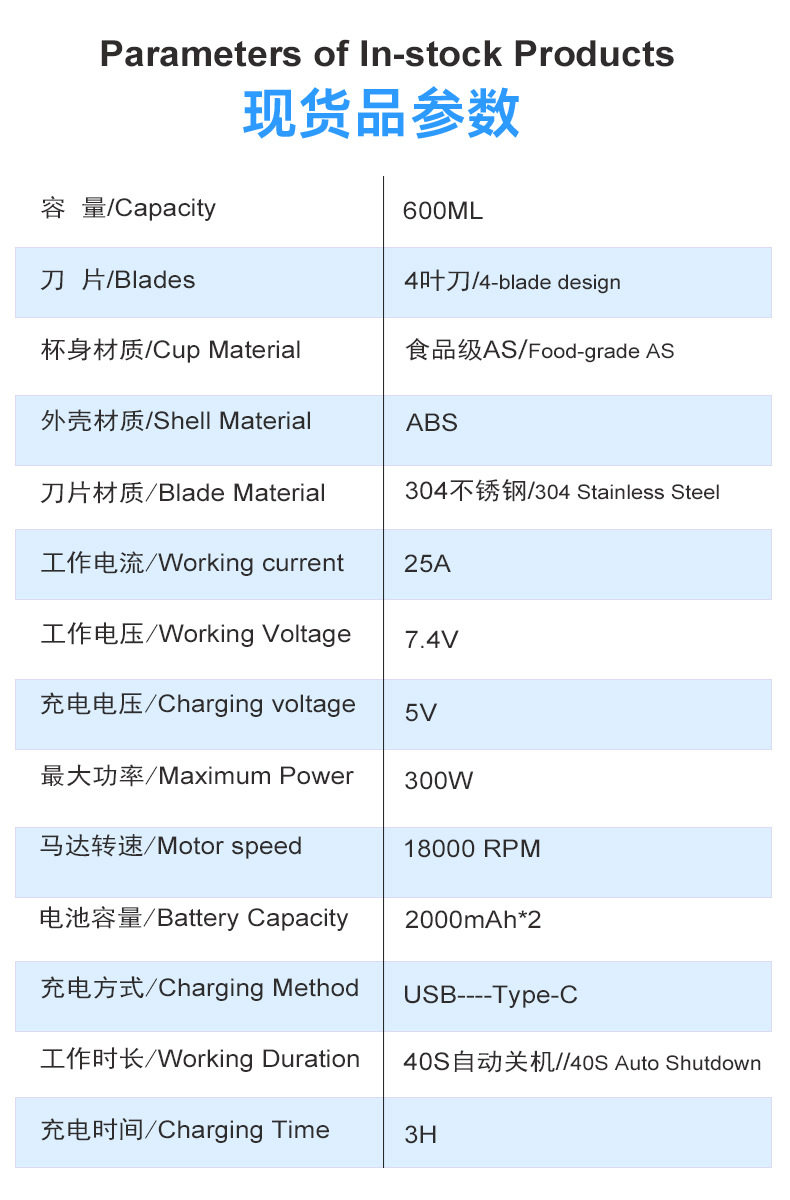 | Package list | Exquisite packaging*1 juicer*1 straw*1 lid*1 hanging rope*1 charging cable*1 instruction manual*1 |
