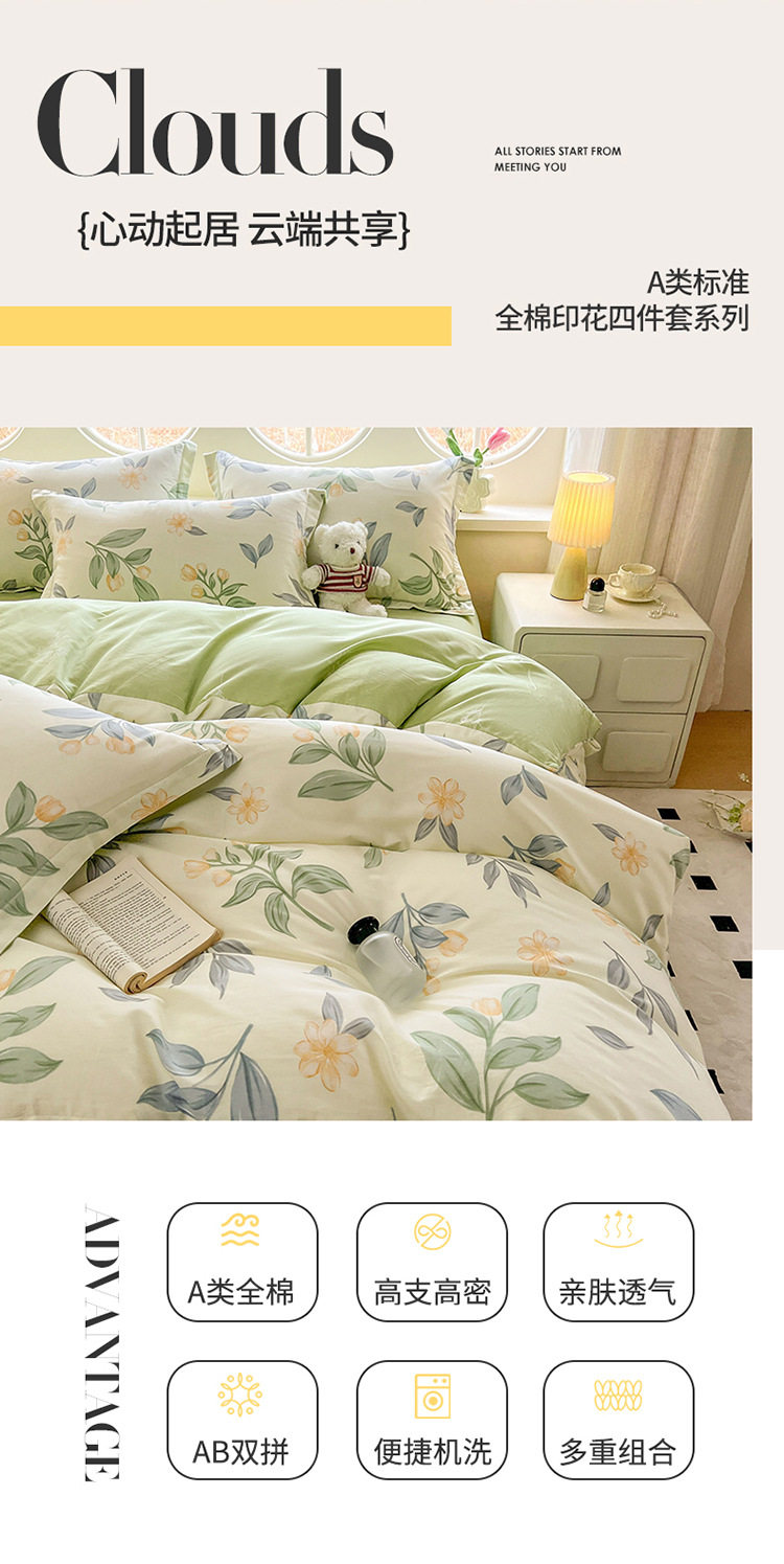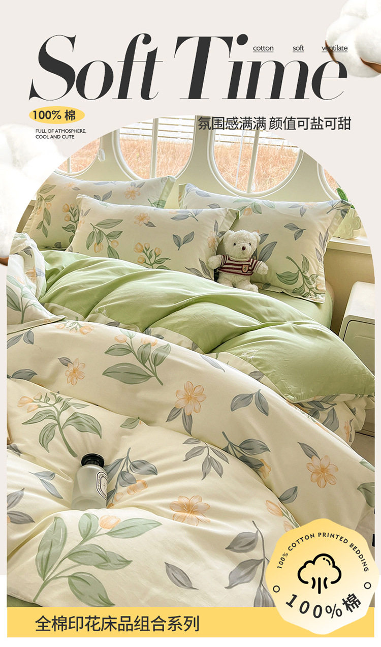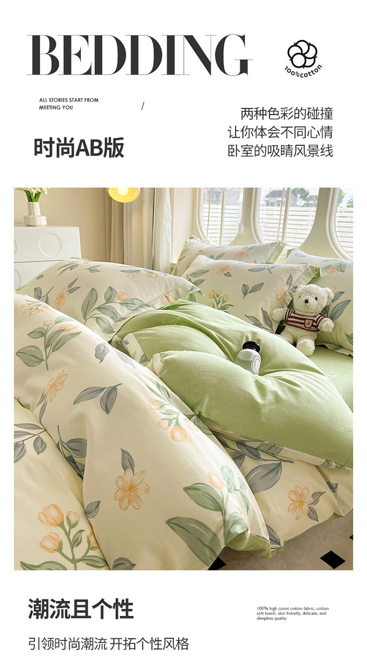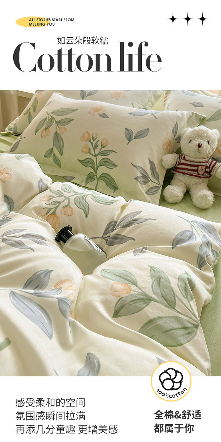 Category a Maternal and Infant Grade 100 Cotton Printed Four-Piece Set Double Cotton Set Student Dormitory Bed Bed Sheets Quilt Cover Three-Piece Set