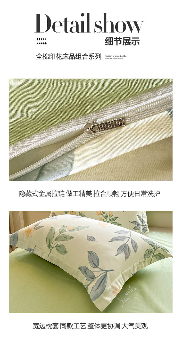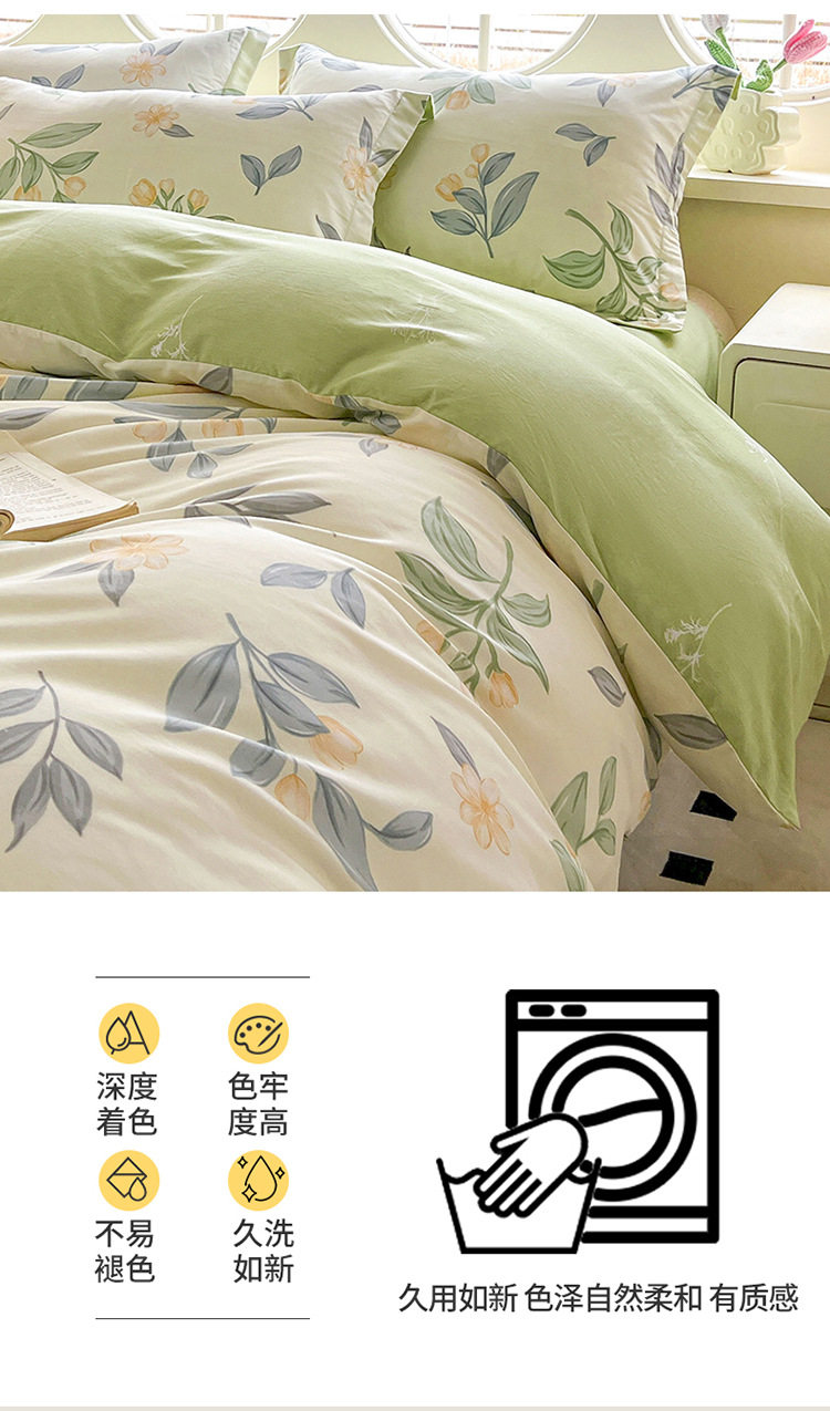 | Size specifications | 0.9m bed sheet student three-piece set [quilt cover 150*200cm],1.5m bed sheet double four-piece set [quilt cover 180*220cm],1.8m bed sheet double four-piece set [quilt cover 200*230cm],2.0m bed sheet double four-piece set [quilt cover 220*240cm] |