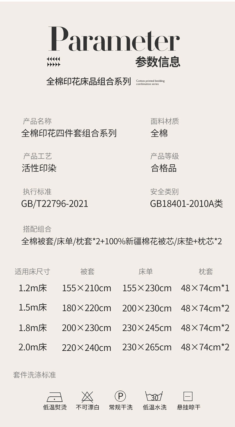| Bedding subdivision | Four-piece set |
