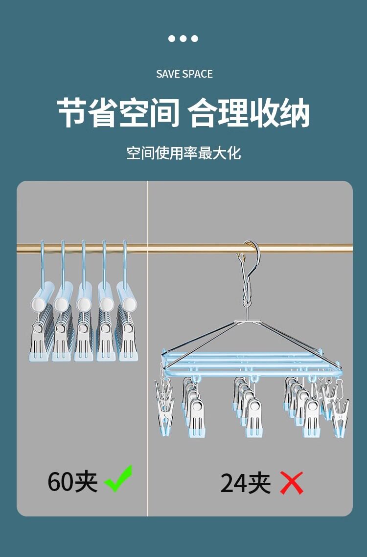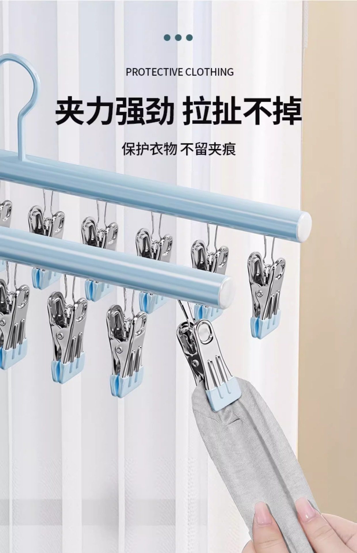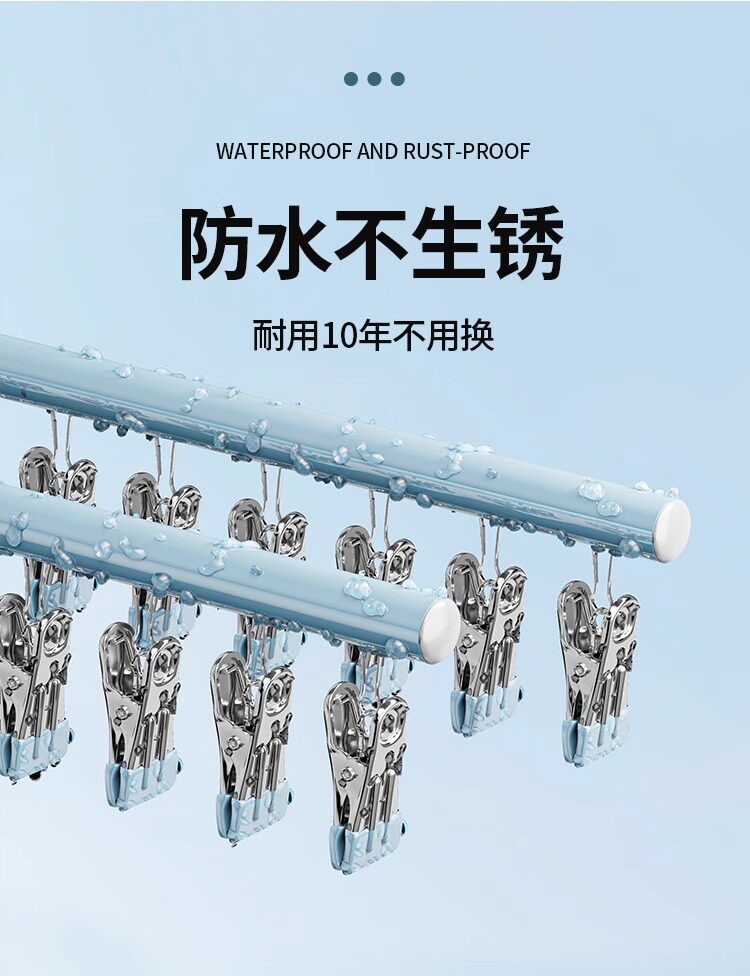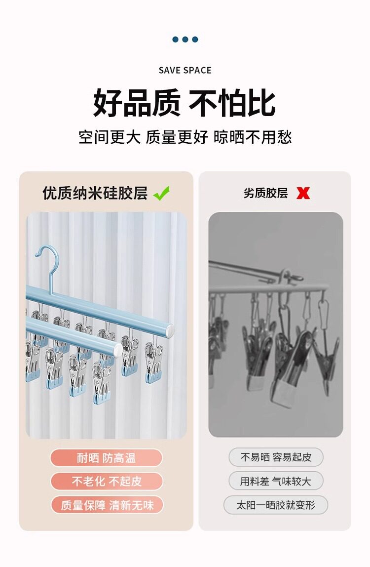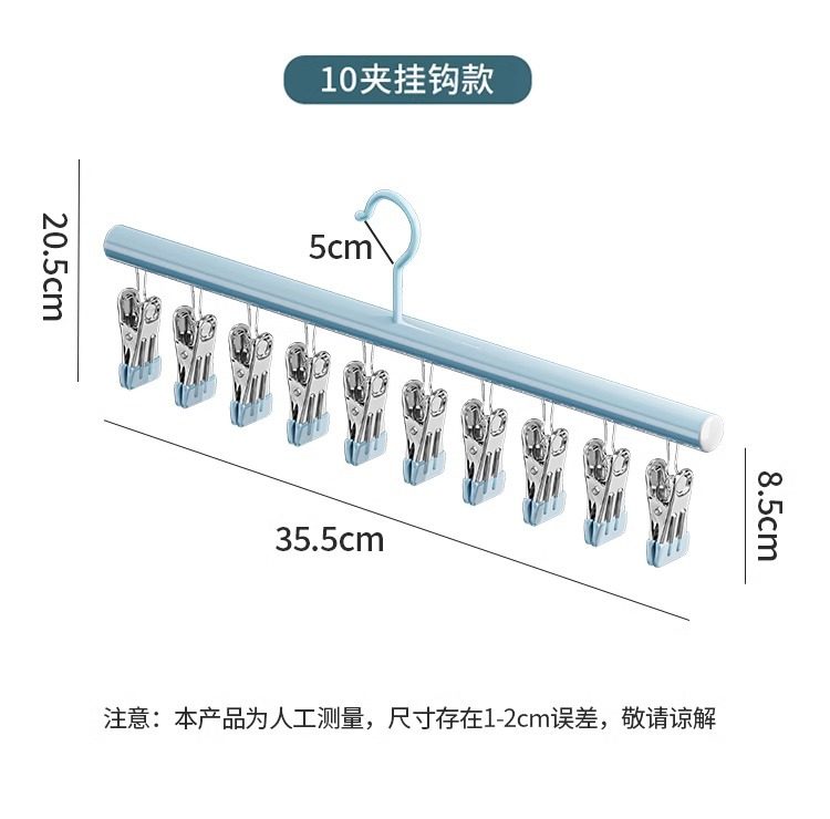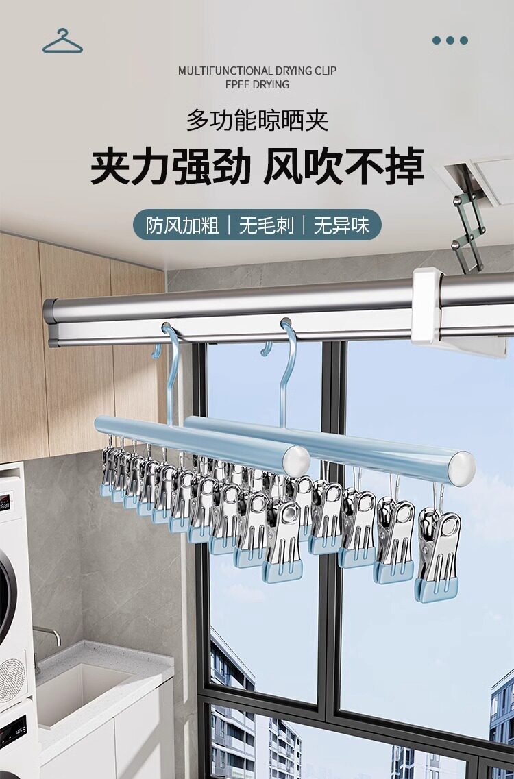 Sock Drying Rack, Clothes Drying Rack with Multiple Clips, Stainless Steel Multifunctional Balcony Underwear Hanger, Anti-Slip and Windproof