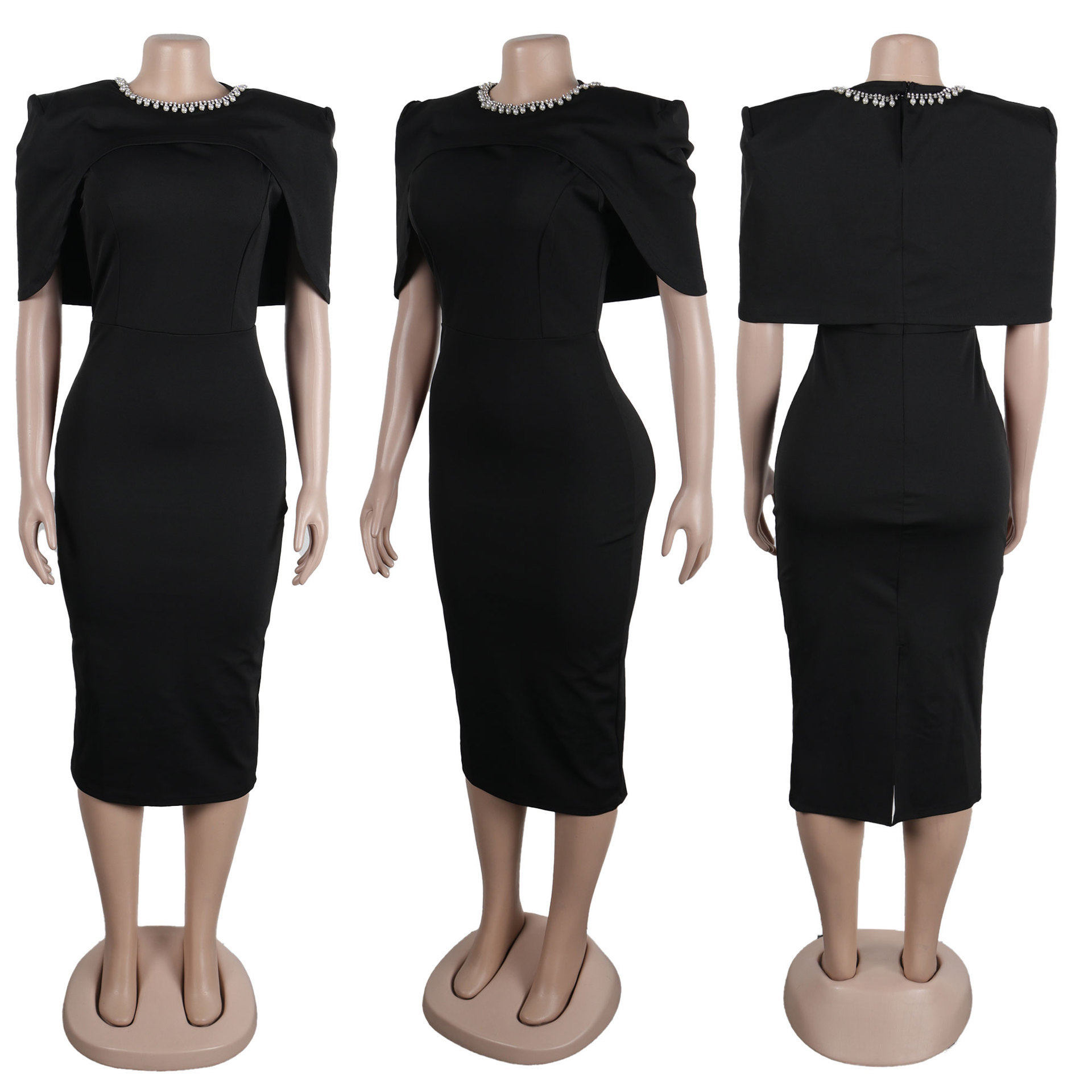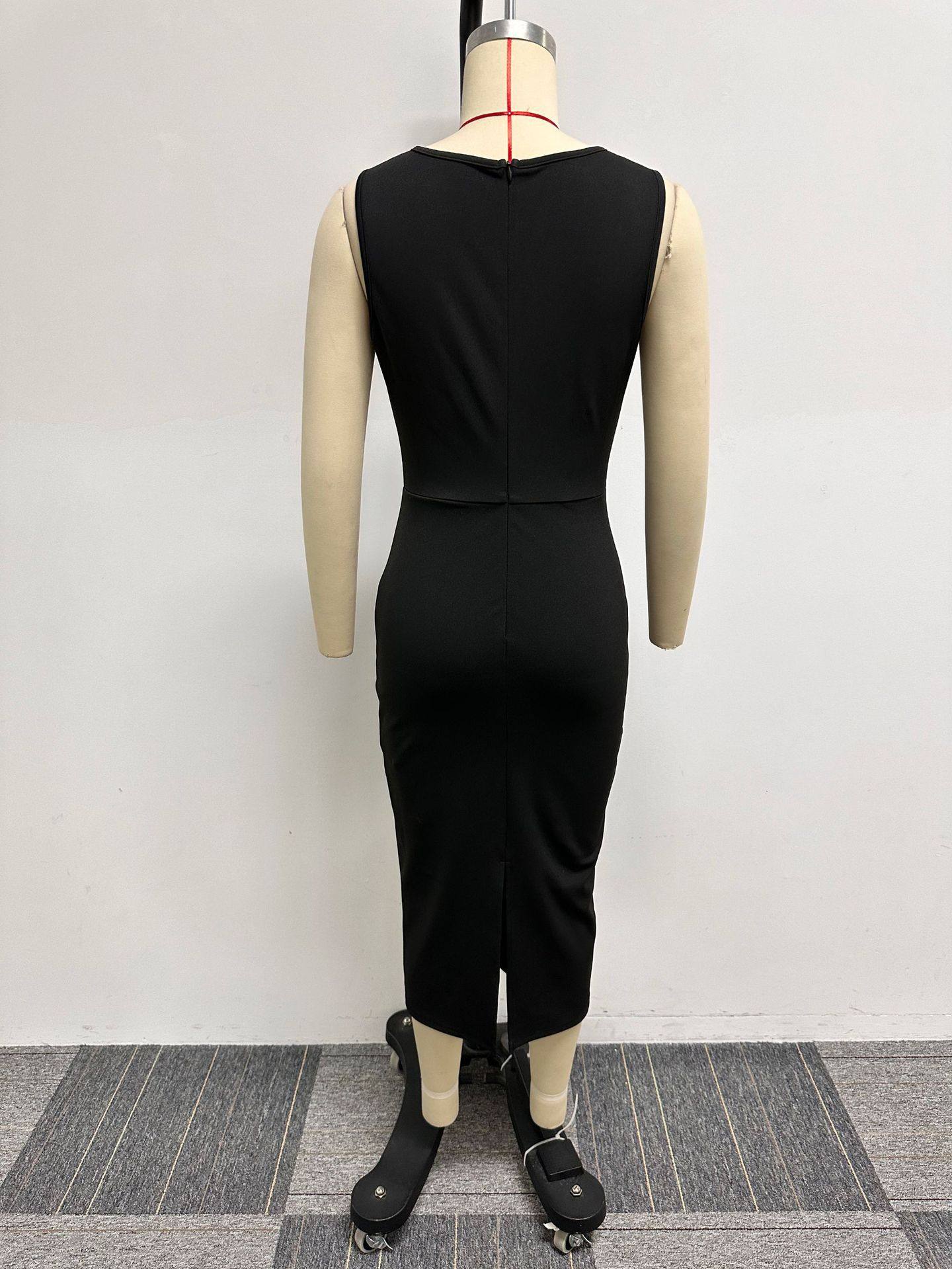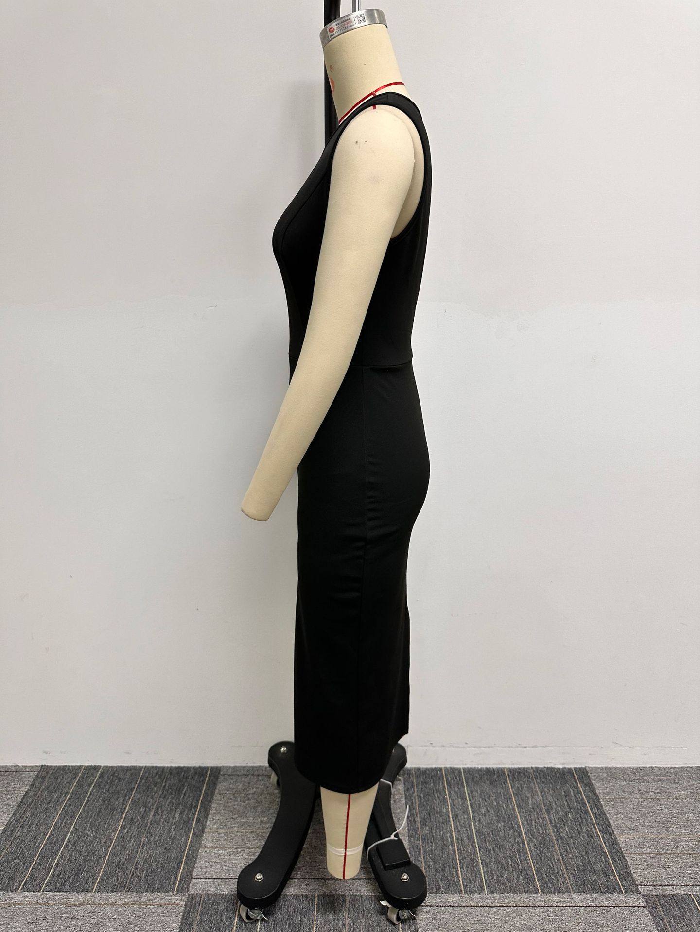 S10668 European and American Casual Fashion Hip-Hugging Slim Vest-Style Back Slit Dress and Waistcoat Two-Piece Set