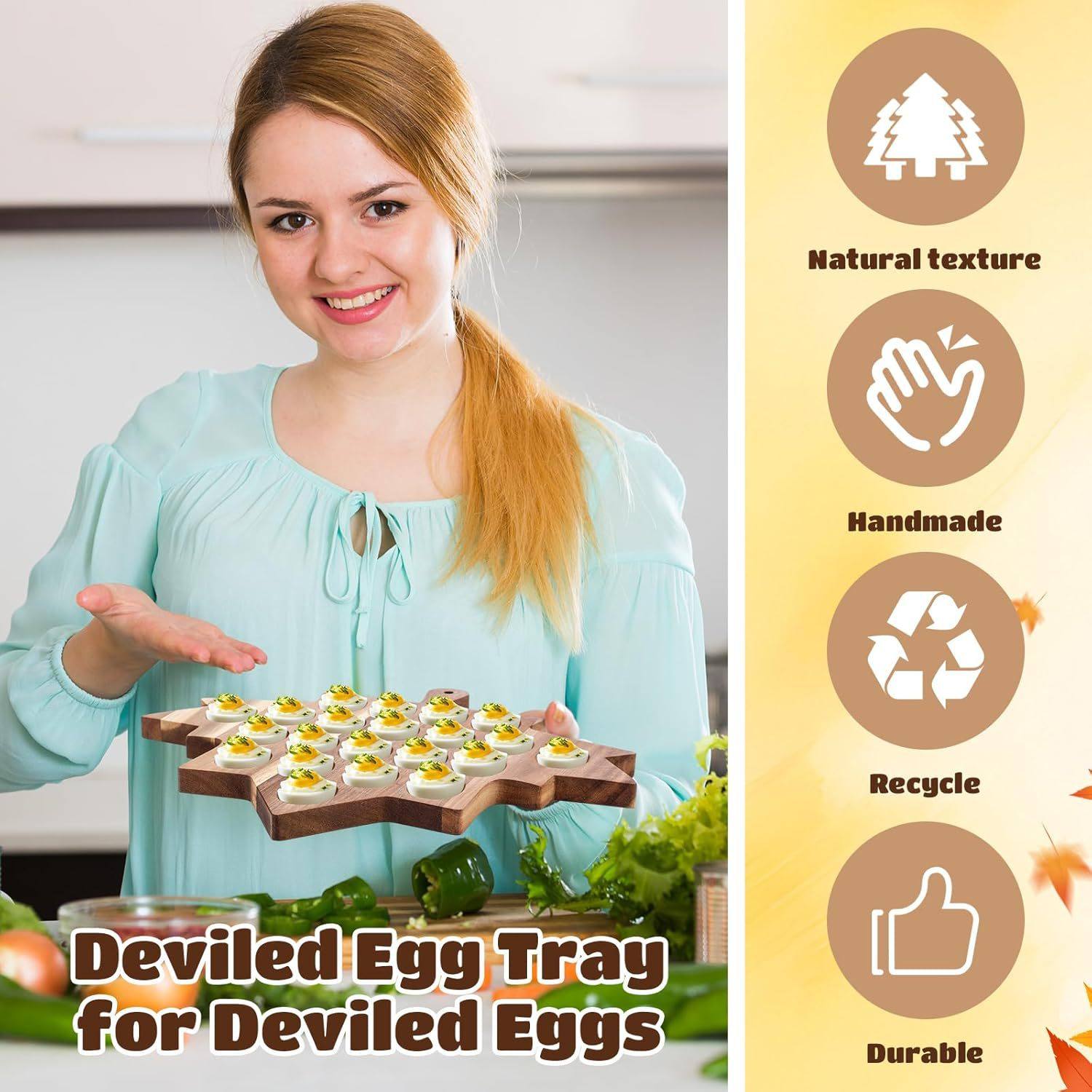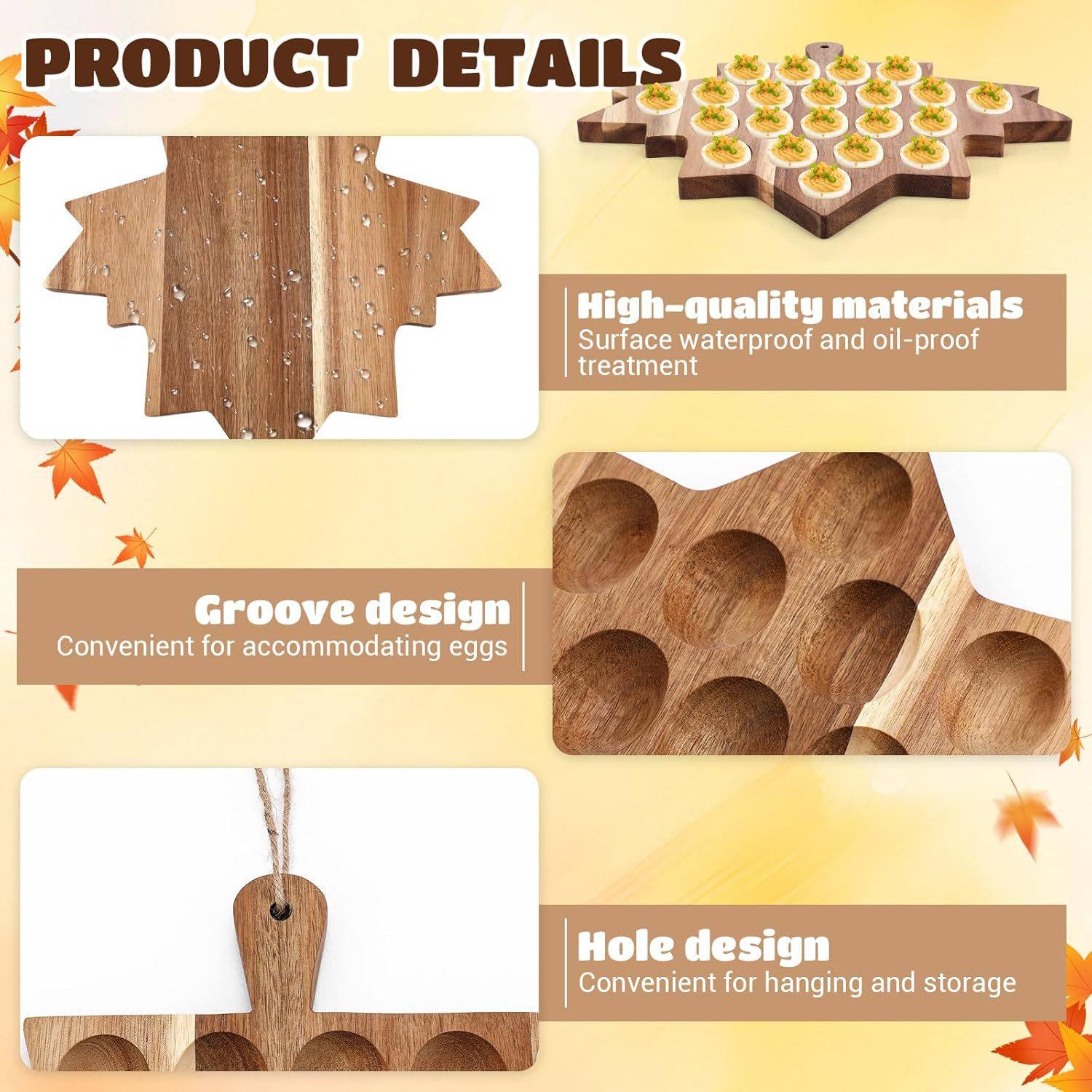 Natural Solid Wood Maple Leaf Shape Devil's Egg Dinner Plate Creative Table Placement Props Thanksgiving Egg Tray