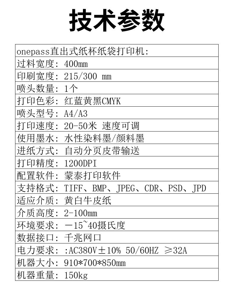 | Specifications | Onepass direct-out paper cup and paper bag printer. please consult the customer before placing an order (the model will be sent directly to the photo) |