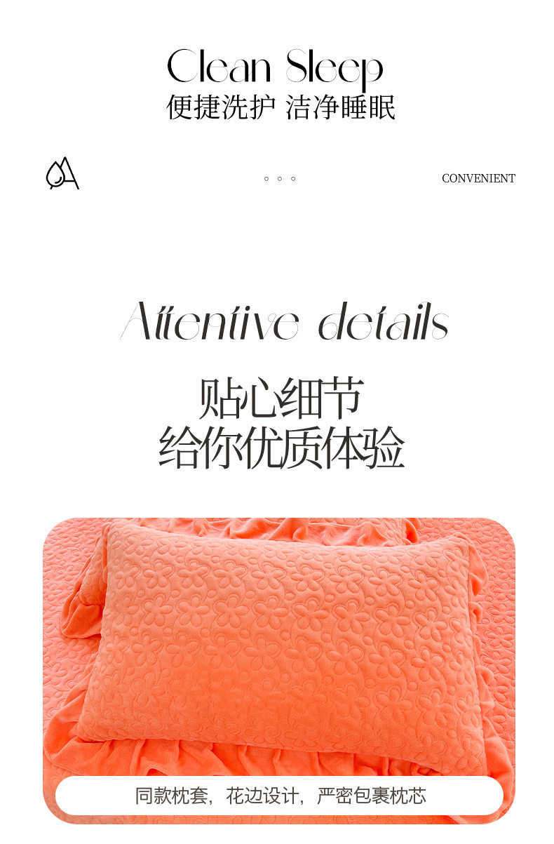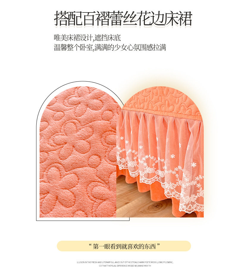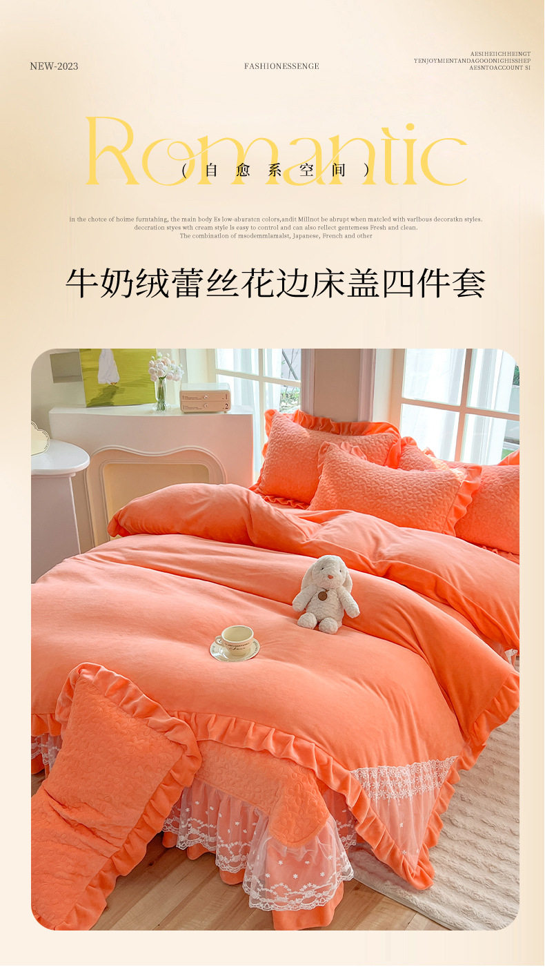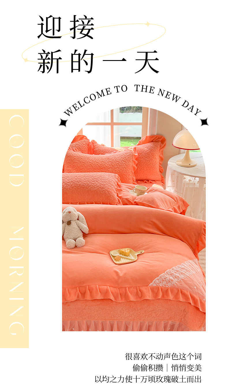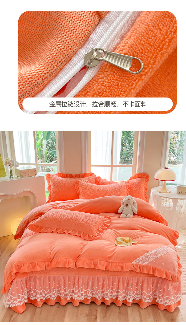Double-Sided Milk Velvet Four-Piece Bed Set, New Single Bed Cover, Bed Skirt, Lace Winter Fleece-Lined Thickeneded Coral Velvet Quilt Cover