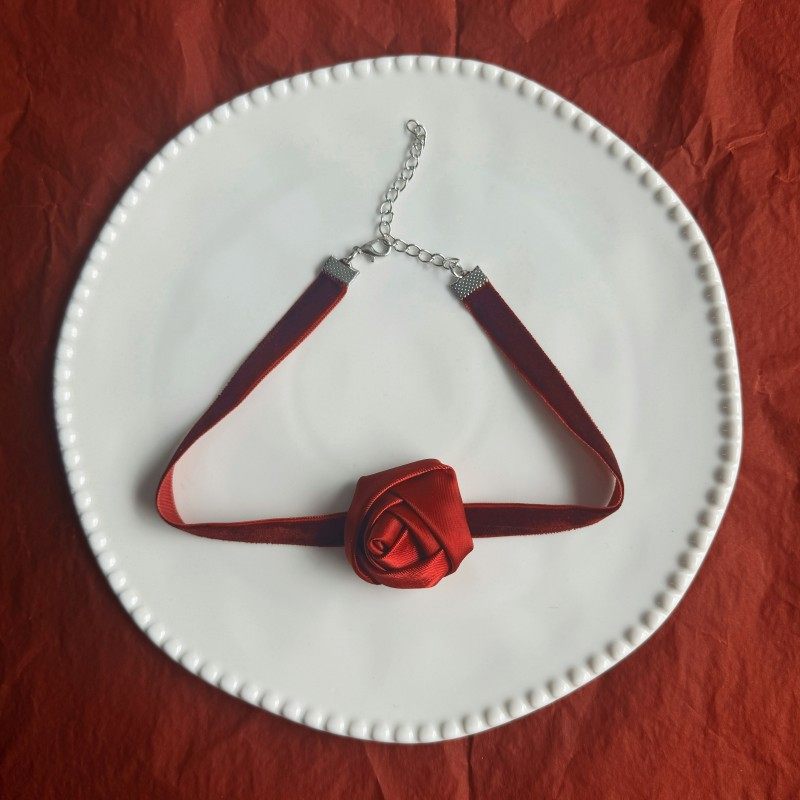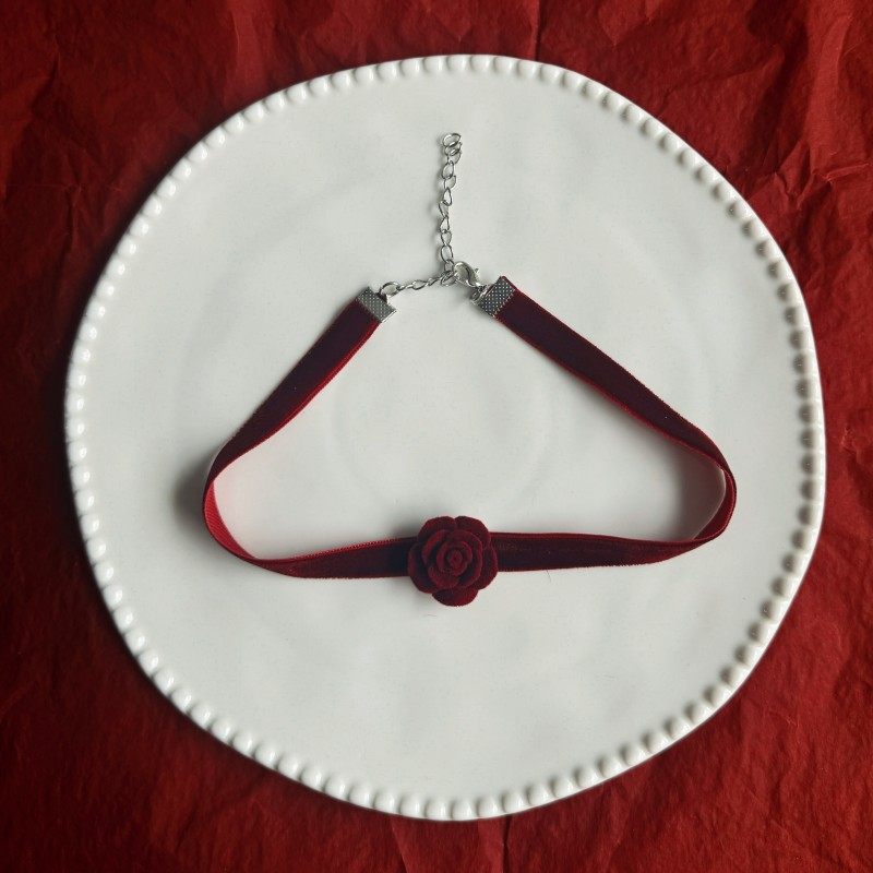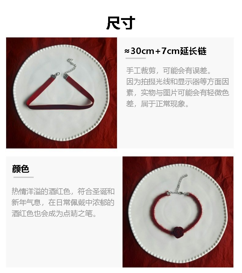 Cross-Border New Product Ankora Red Collar Rose Choker Clavicle Chain Christmas and New Year Necklace for Women
