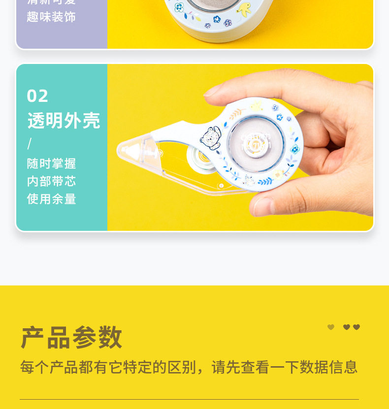 Deli 71531 Girl's Transparent Correction Tape with Large Capacity for Students, 5mm*12 Correction Tape
