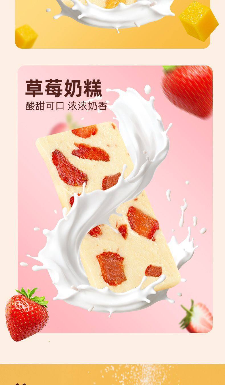 Internet-Famous Mango Strawberry Milk Cake Traditional Pastry Dried Mango Handmade Snack Glutinous Rice Cake Soft Candy Small Package Snack Factory