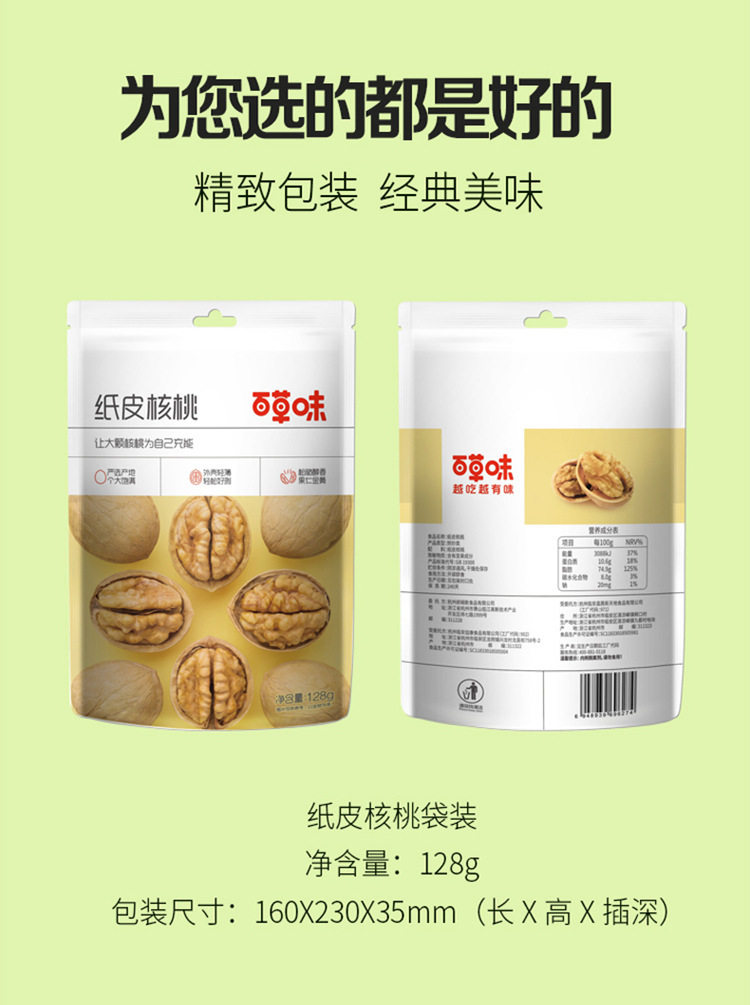 | Packaging specifications | [1 bag] paper walnut original flavor 128g |