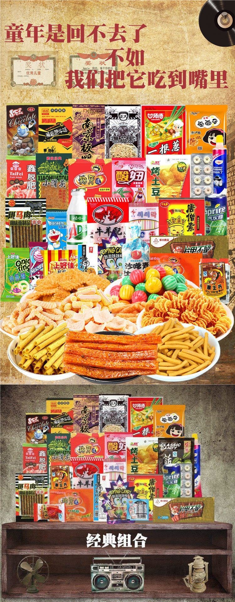 | Taste | [big gift box] 50 packs will give you 50 small packs - 100 packs in total, 40 packs of nostalgic snacks will give you 30 small packs - 70 packs in total, 30 packs of nostalgic snacks will give you 20 small packs |