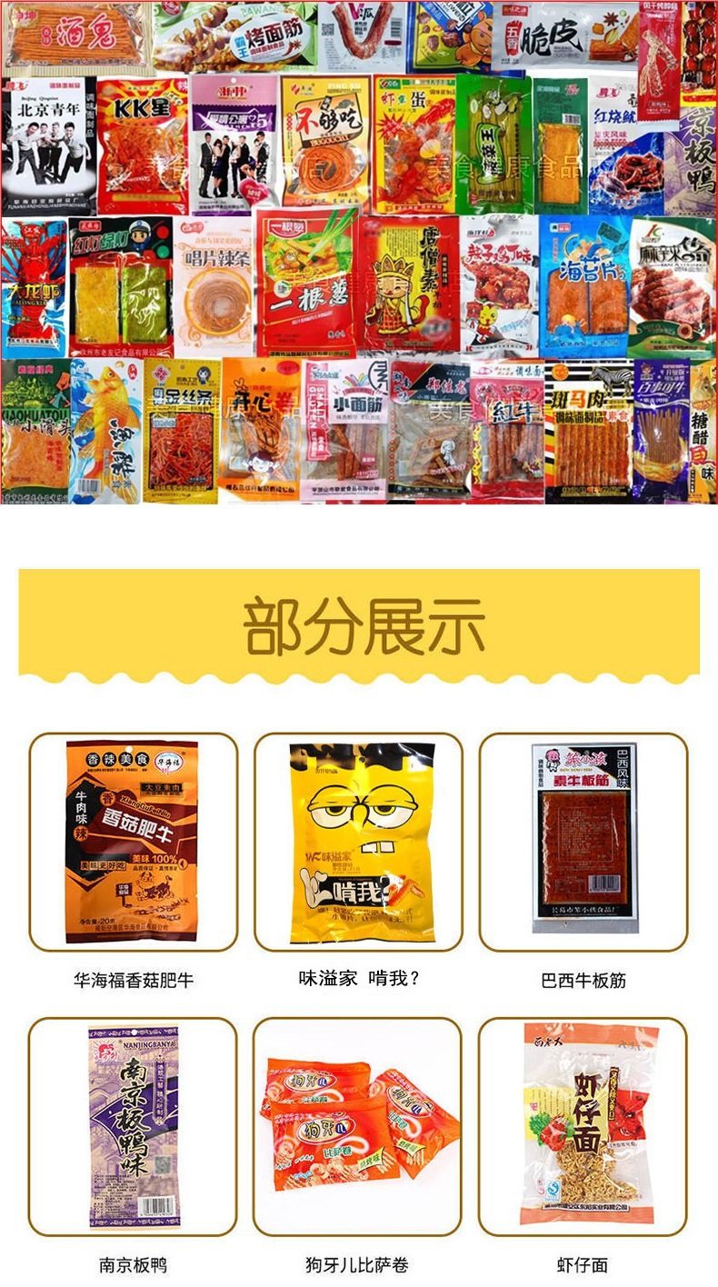 | Packaging specifications | 5 packs of nostalgic snacks and 5 small packs - 10 packs in total,[big gift box] 50 packs, 50 small packs - 100 packs in total,40 packs of nostalgic snacks, get 30 small packs - 70 packs in total,30 packs of nostalgic snacks, get 20 small packs - 50 packs in total,40 packs of concession stand nostalgic snacks with less repetition,30 packs of concession stand nostalgic snacks with less repetition,20 packs of concession stand nostalgic snacks with less repetition,10 packs of concession stand nostalgic snacks with less repetition |