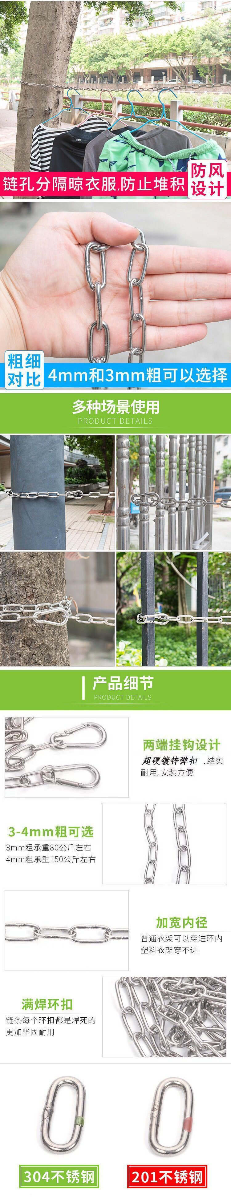 304 Stainless Steel Chain Clothesline, Quilt Rope, Rainproof, Rustproof, Windproof and Anti-Slip, Balcony Clothesline Chain Factory