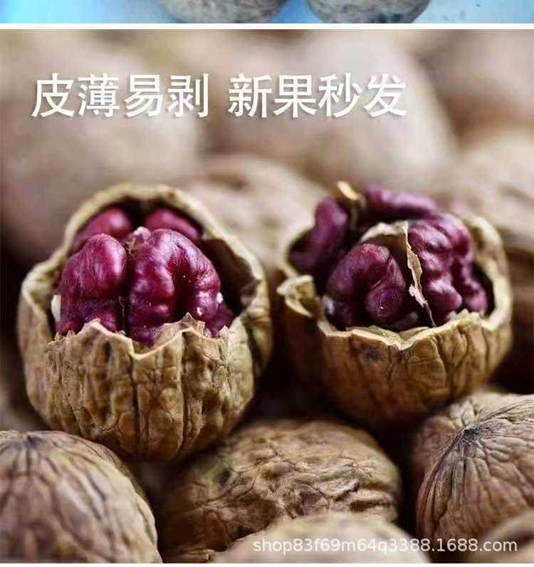 New Yunnan Red-Skinned Walnuts, Thin-Skinned Red Rice, Fresh Snacks, Purple-Skinned Walnuts, Dried Fruits and Nuts, Wholesale Walnuts