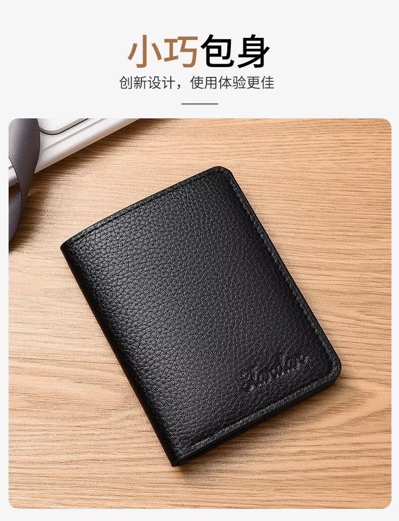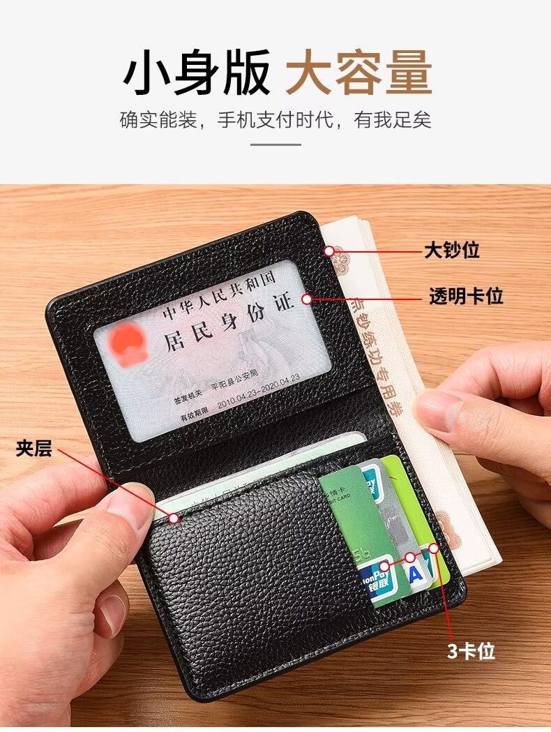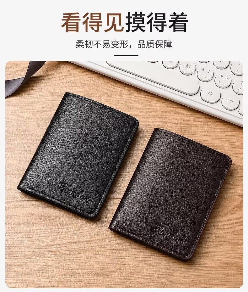 Card Holder Men's Wallet Short Portable Anti-Degaussing Id Card Holder Simple Compact Card Holder Driver's License Leather Case