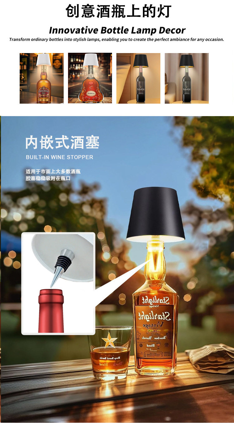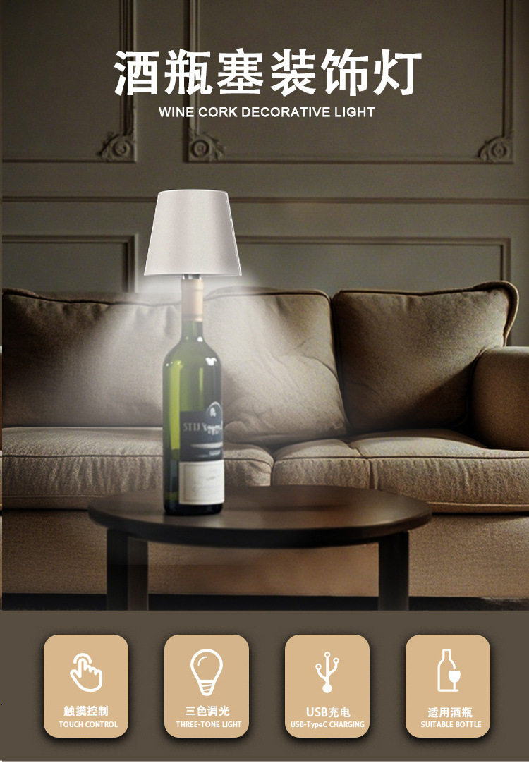 Wine Bottle Stopper Lamp Cross-Border Led Bar Restaurant Atmosphere Table Lamp Outdoor Camping Style Table Decoration Rechargeable Wine Head Night Light