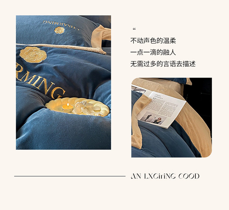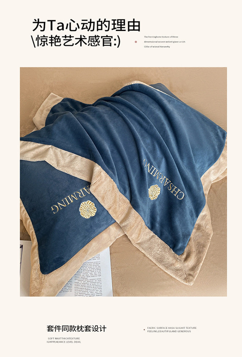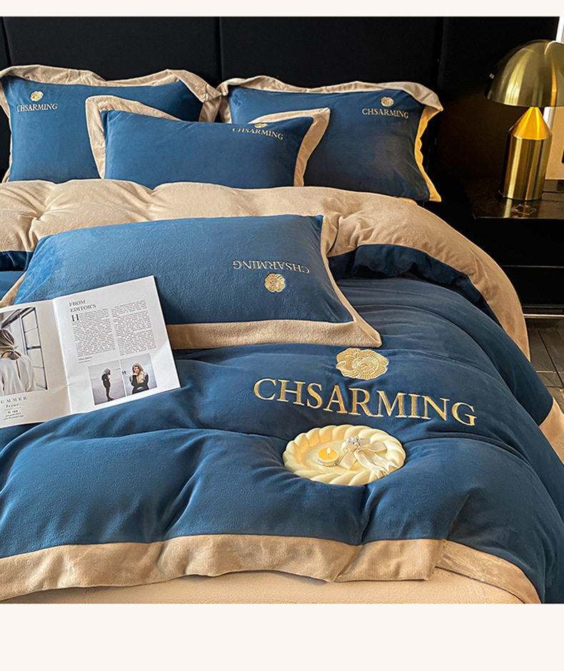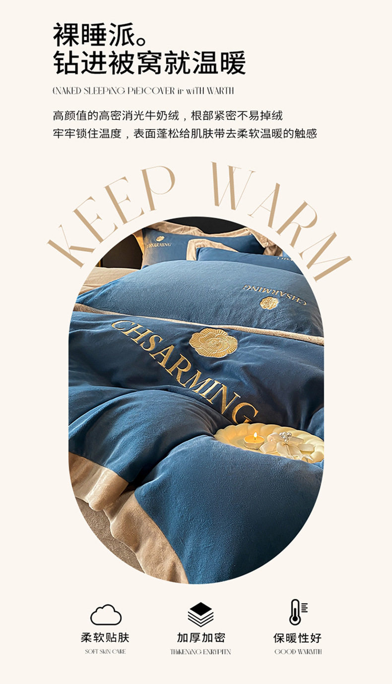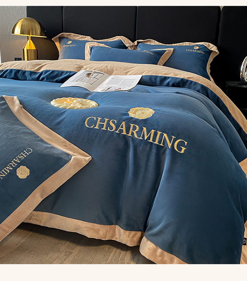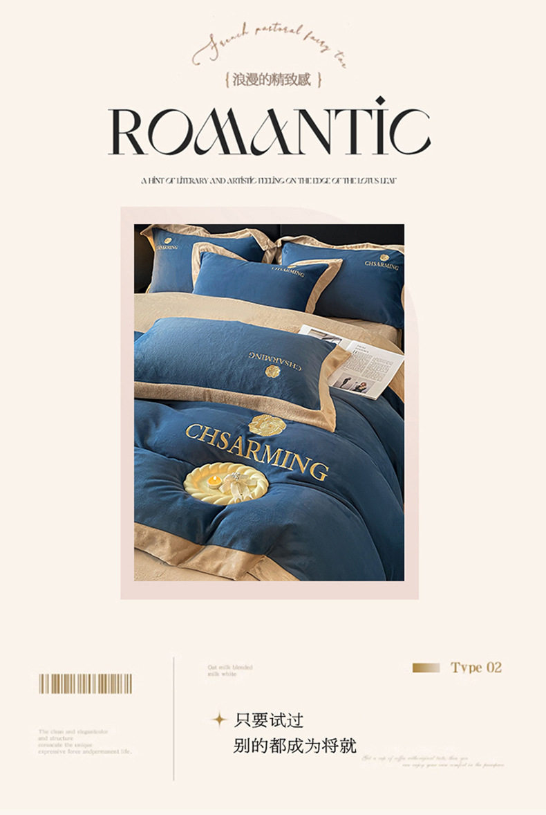 Advanced Version of High-Density Matte Wide-Brimmed Pure Color Milk Velvet Four-Piece Set with Double Embroidery Skin-Friendly and Warm Bedding Set