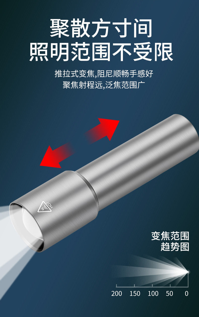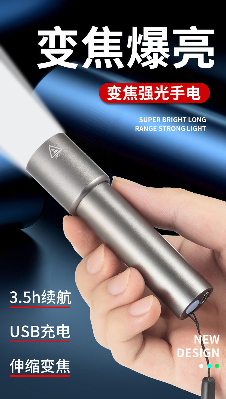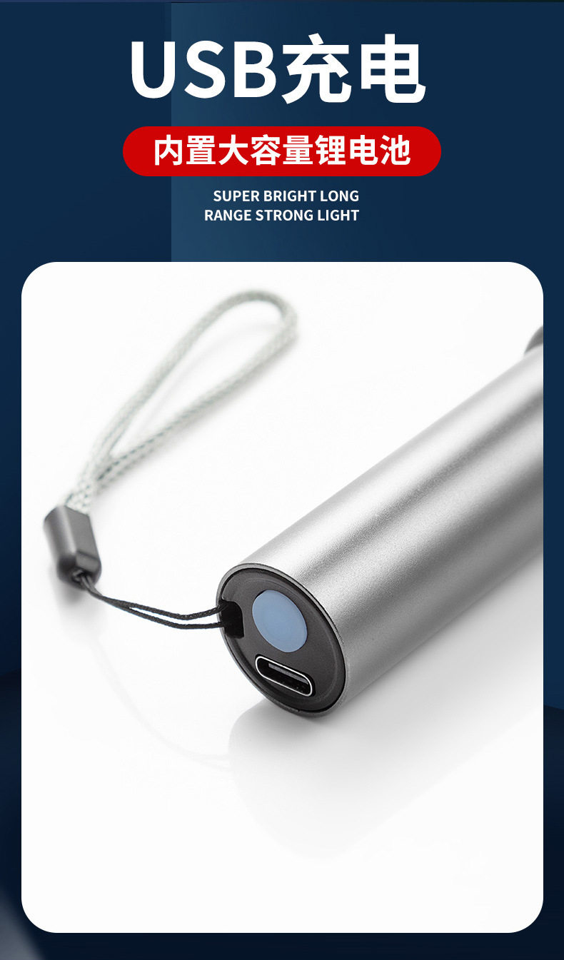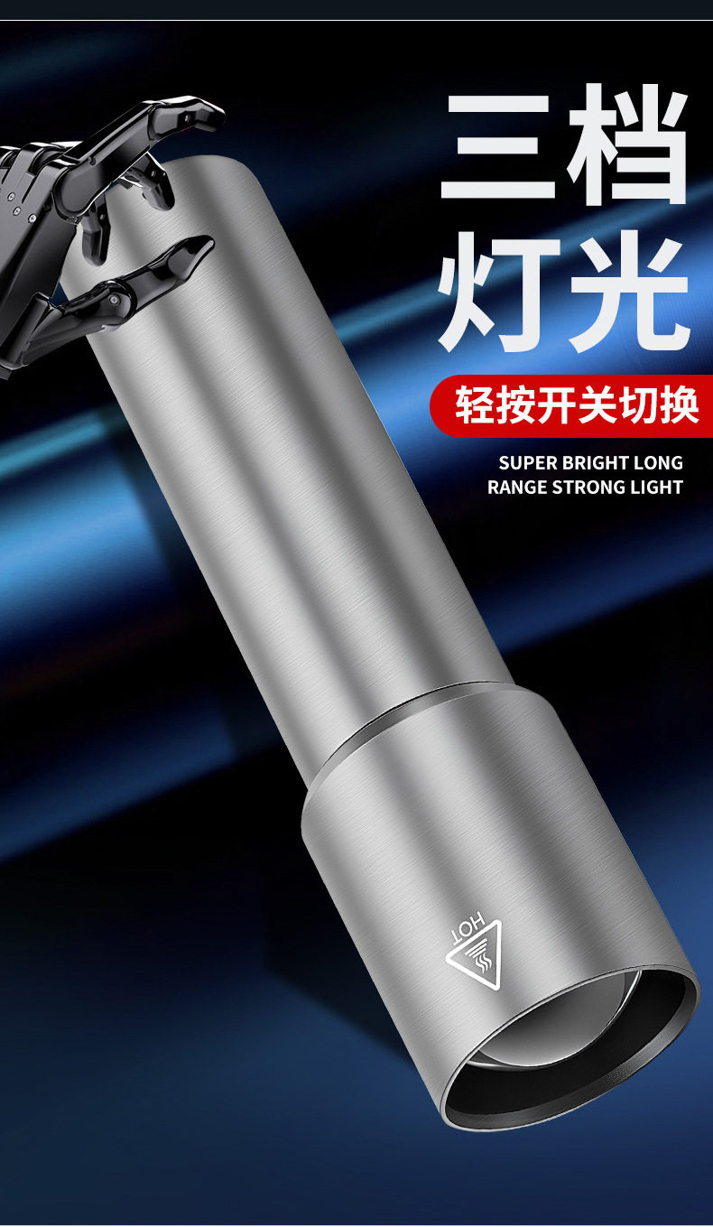 Multifunctional Flashlight Strong Light Portable Aluminum Alloy Rechargeable Zoom Mini Portable Lighting Flashlight