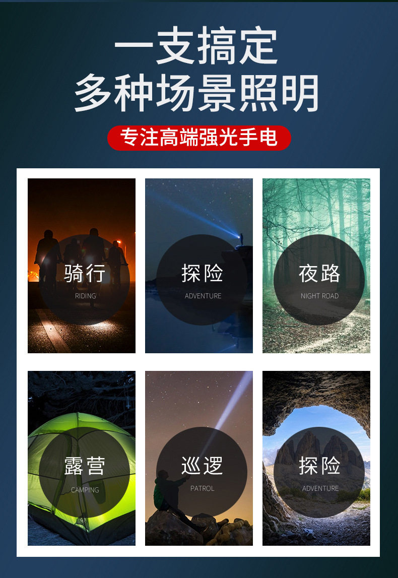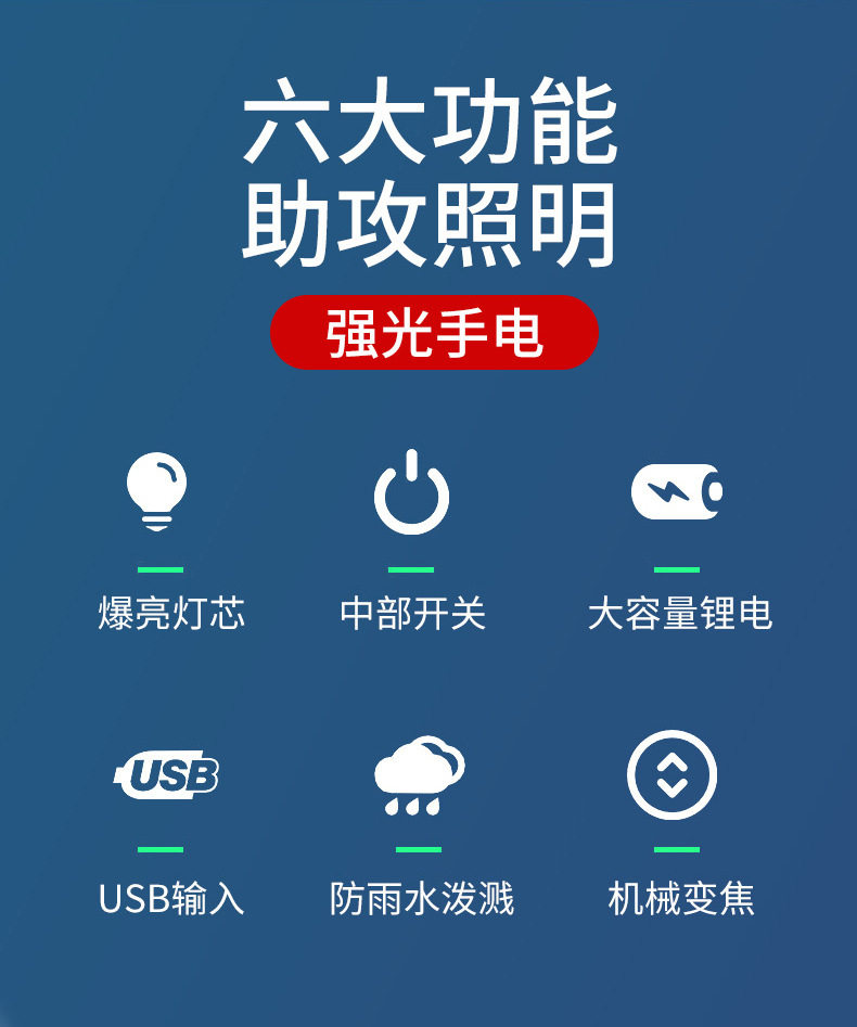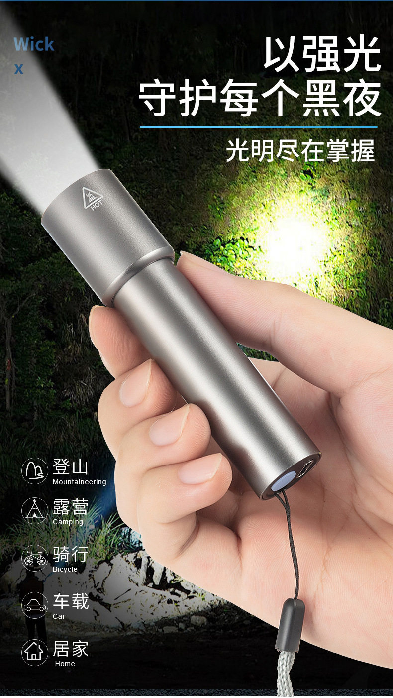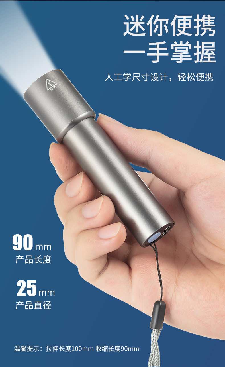 Multifunctional Flashlight Strong Light Portable Aluminum Alloy Rechargeable Zoom Mini Portable Lighting Flashlight