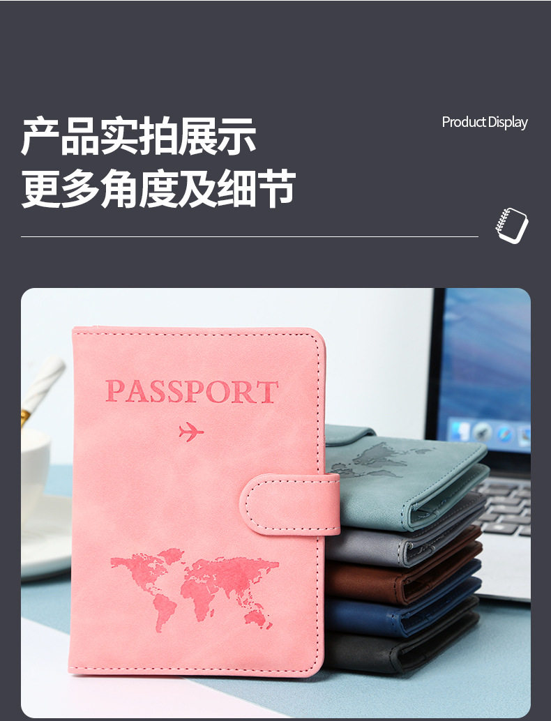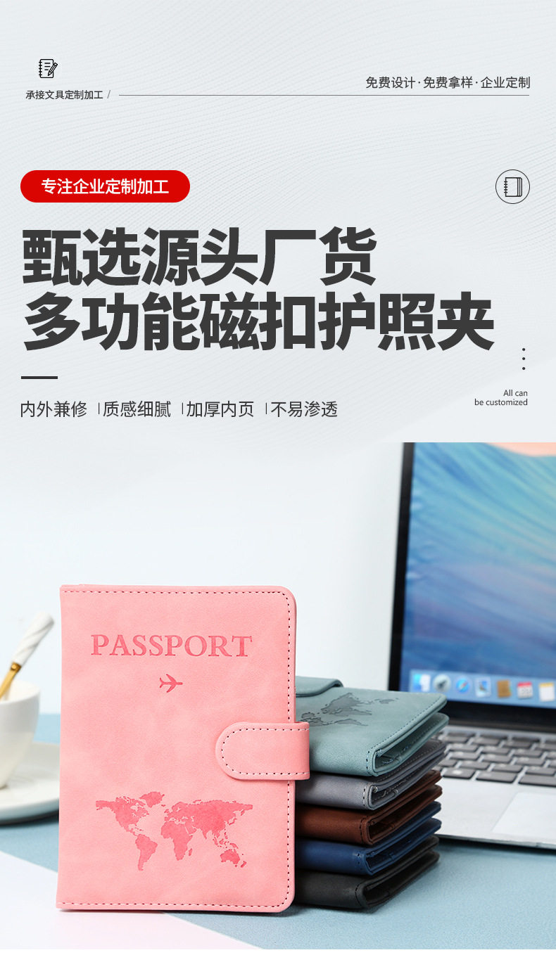 Ready-Made Pu Magnetic Buckle Rfid Passport Holder with Printable Pattern, Multifunctional Waterproof Anti-Theft Anti-Magnetic Ticket Holder Card Case