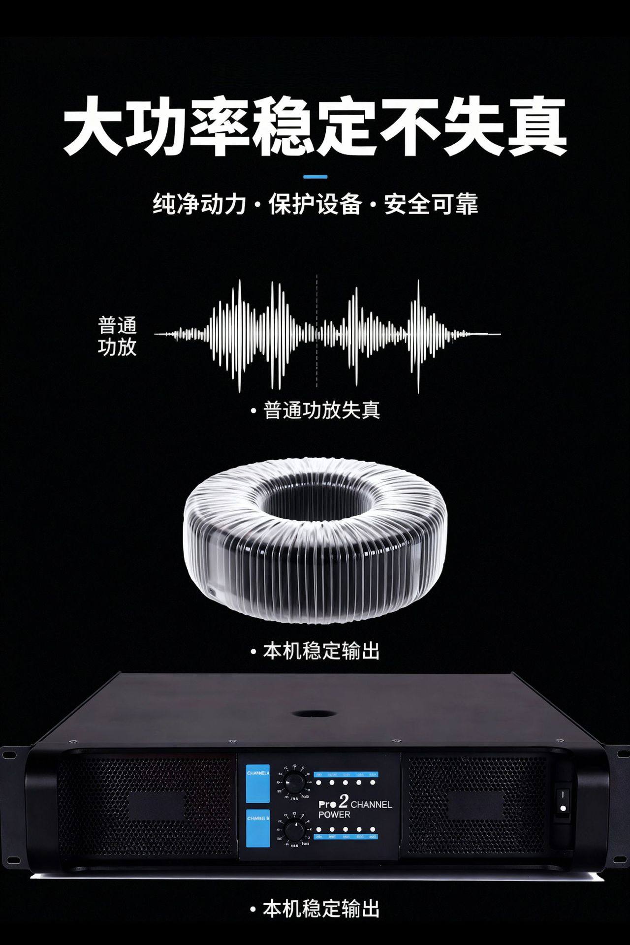 Cross-Border Professional Engineering Grade Power Amplifier High-Power Distortion-Free 4-Channel Stage Conference Broadcast Post-Stage Amplifier