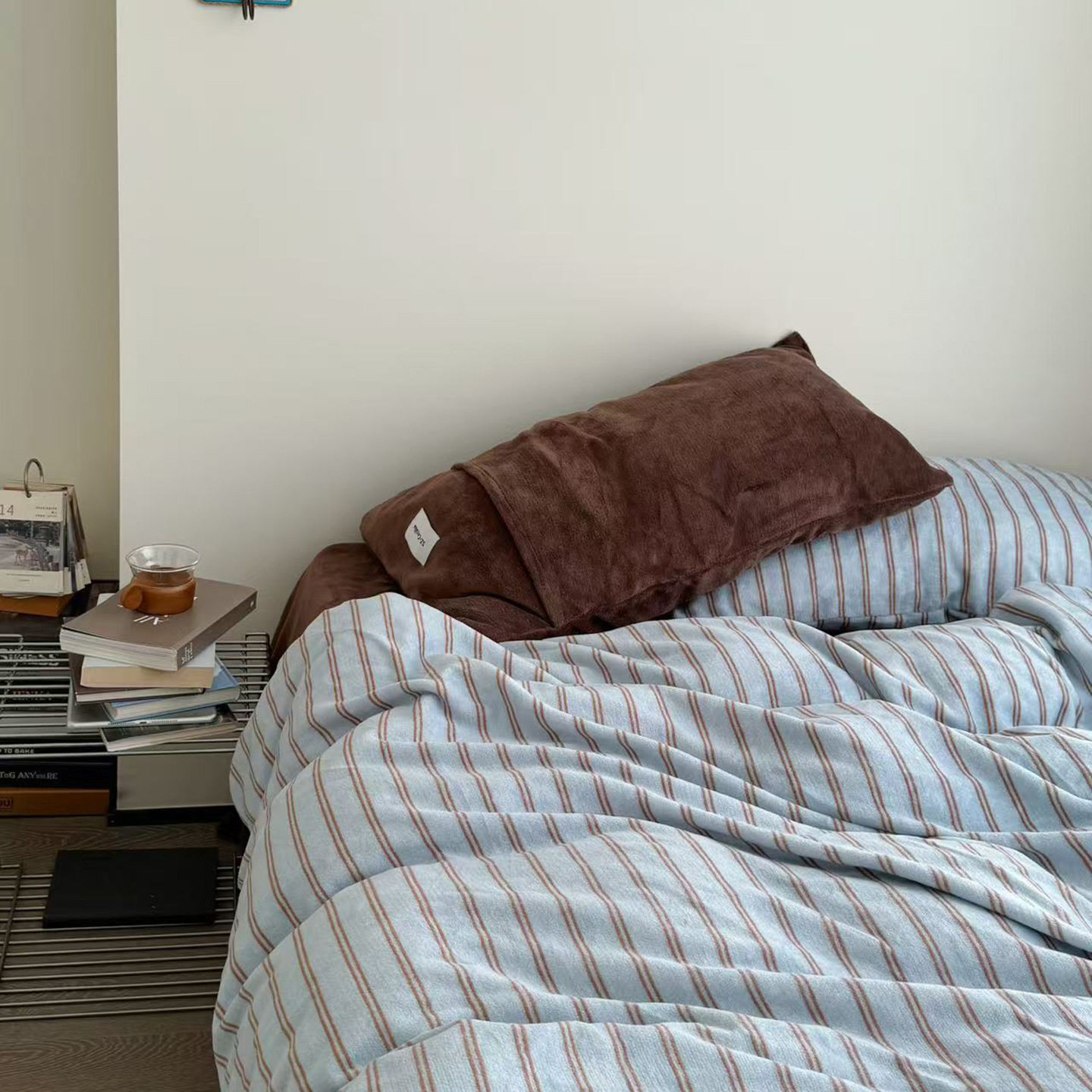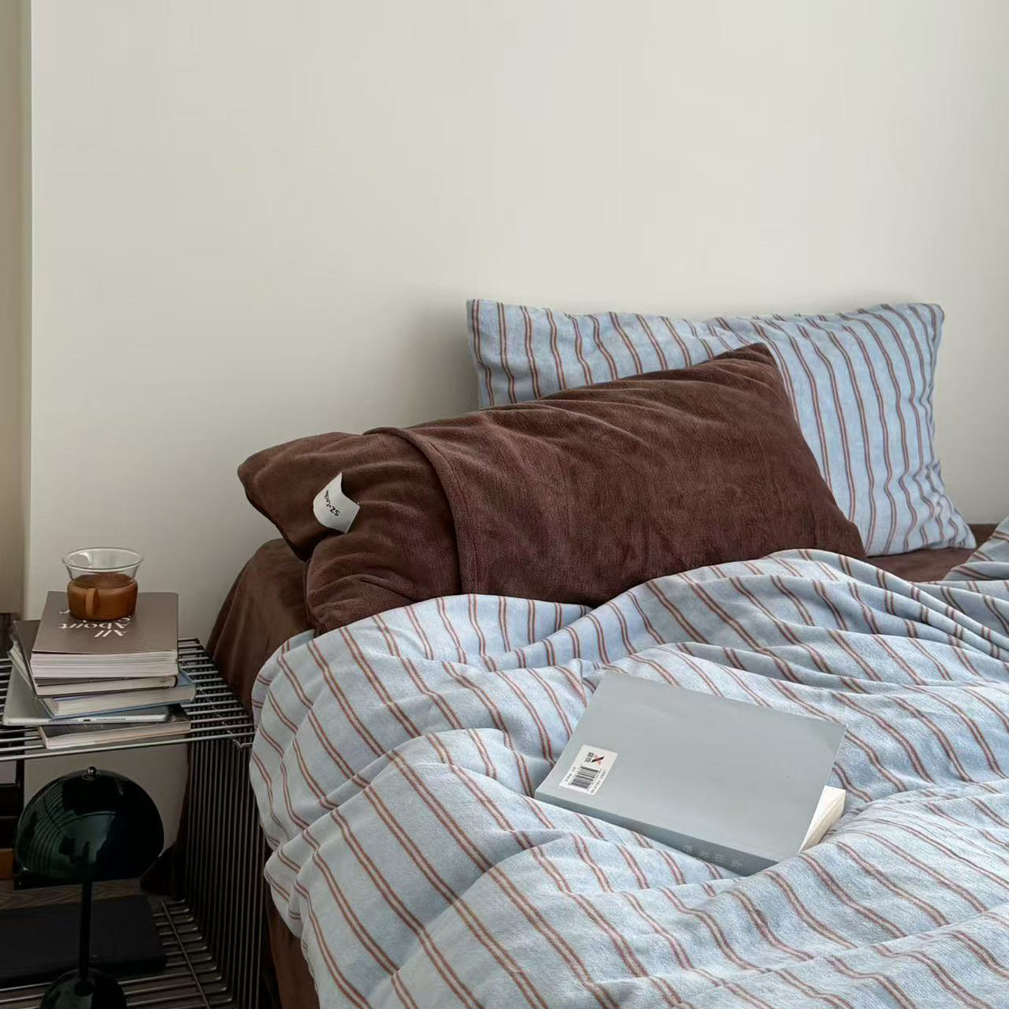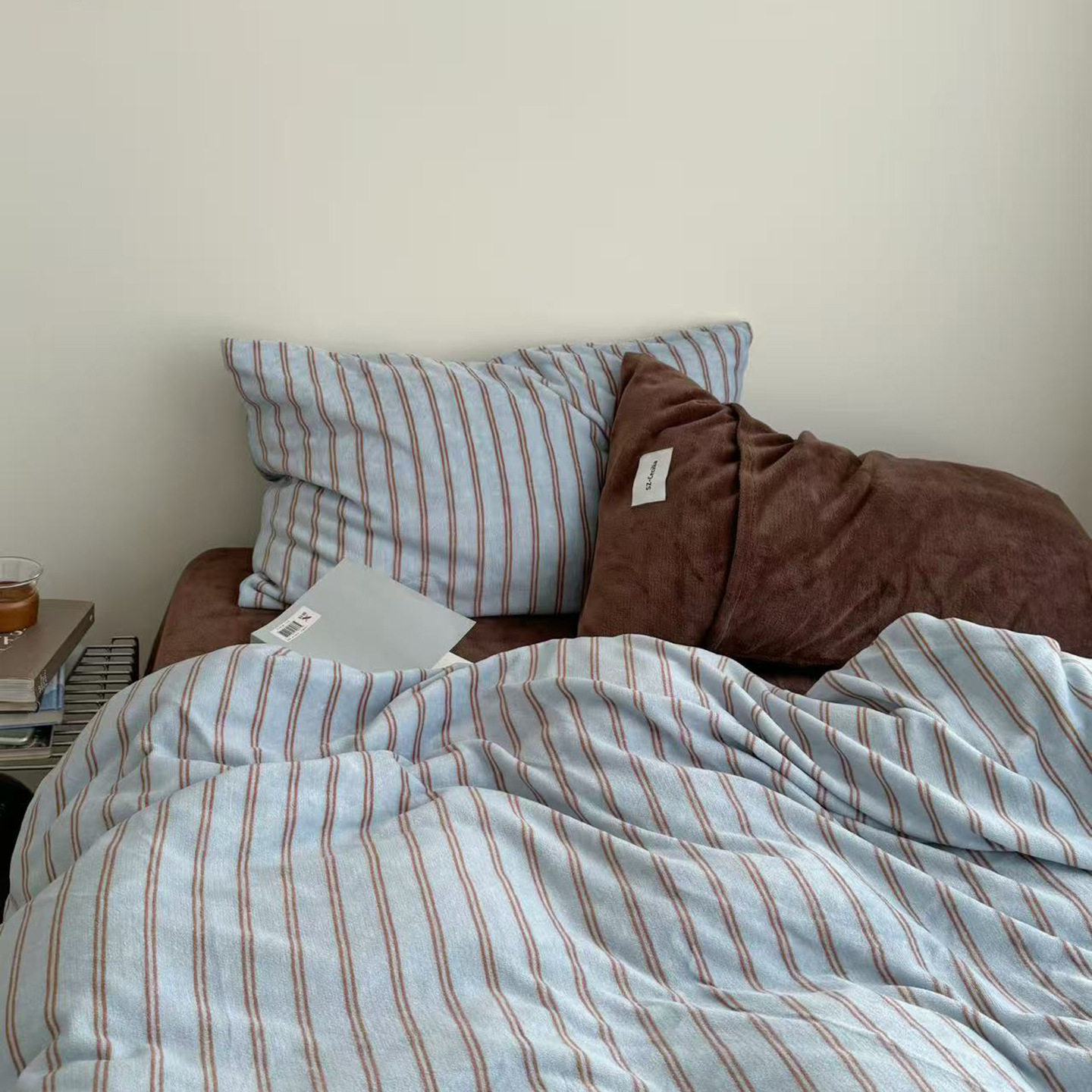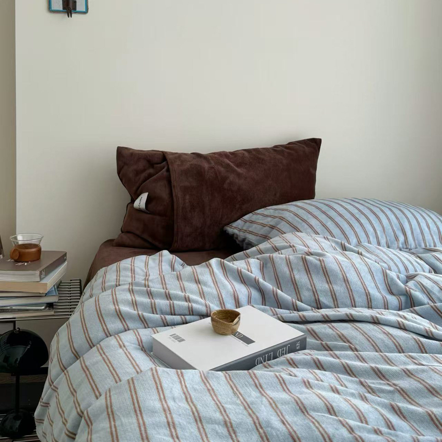 Korean Simple Herman Stripesd Milk Velvet Four-Piece Set Autumn and Winter Heat Storage Warm Quilt Cover Bed Sheets Bed Three-Piece Set