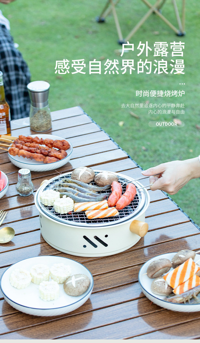 Outdoor Round Barbecue Stove, Household Indoor Tea Stove, Camping Style Portable Barbecue Stove, Multi-Purpose Charcoal Stove