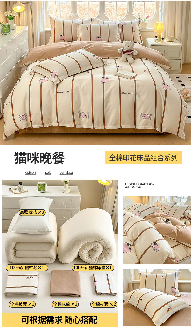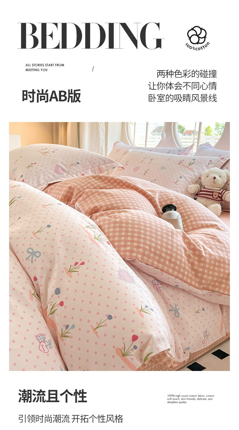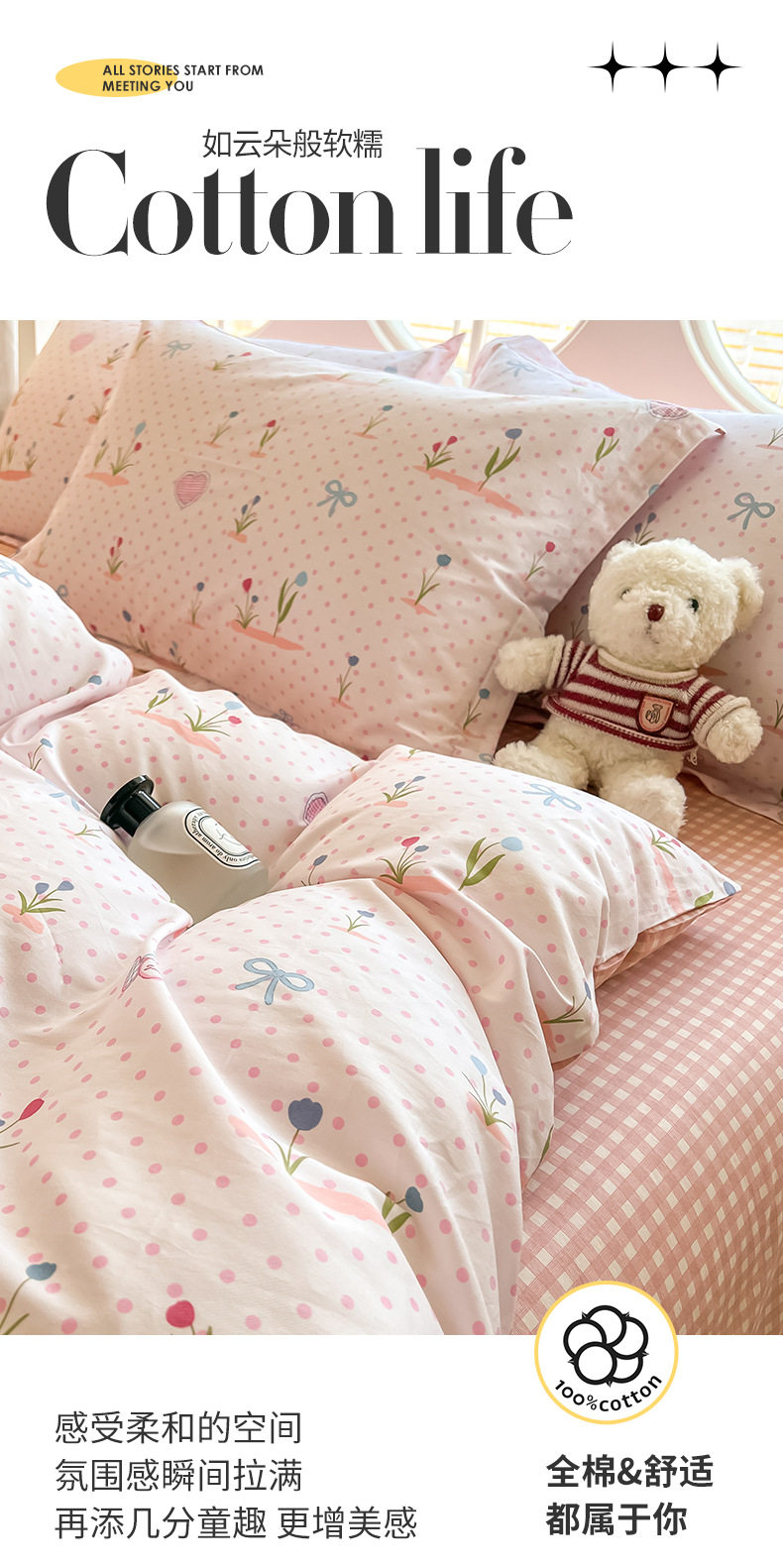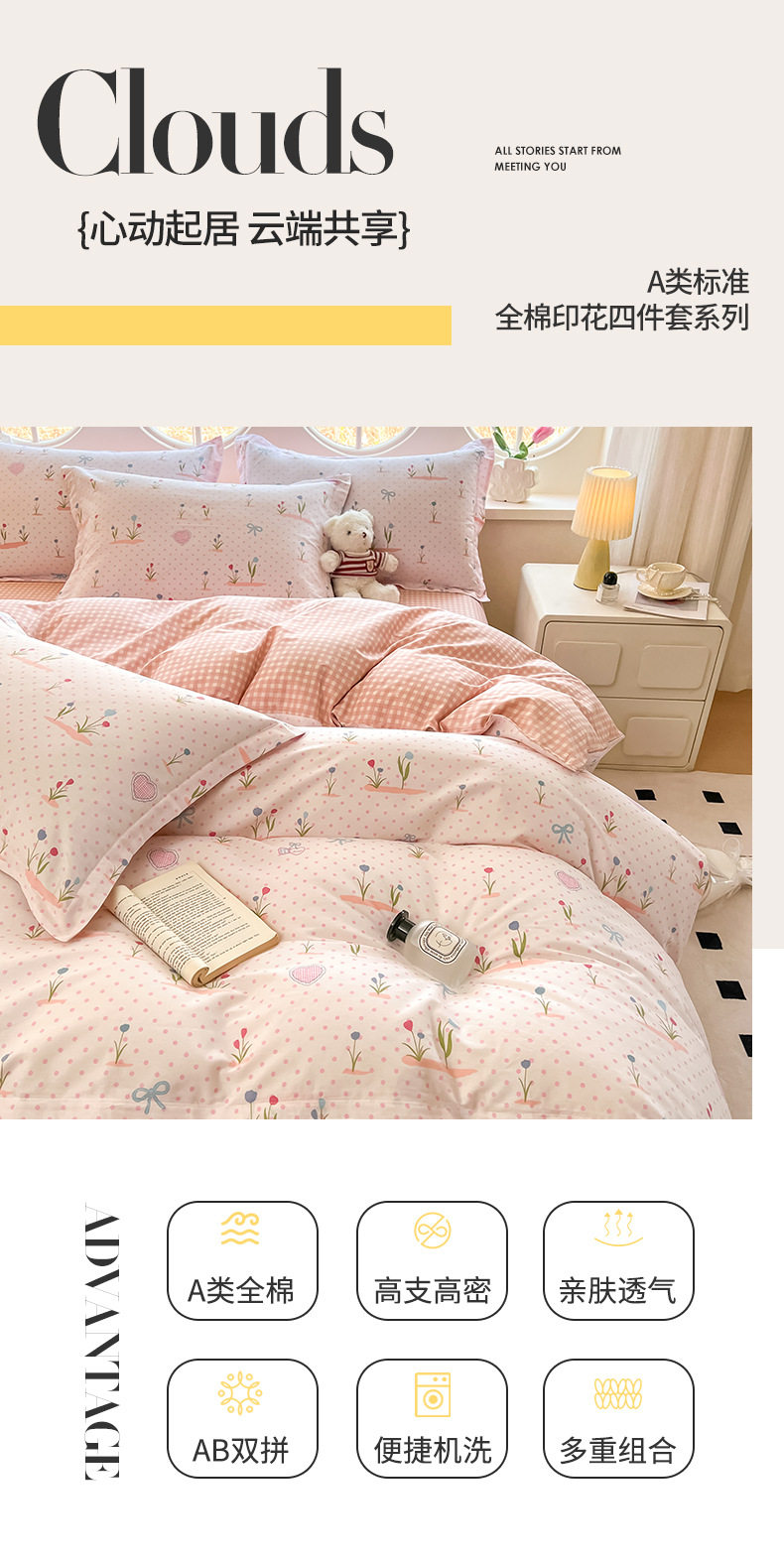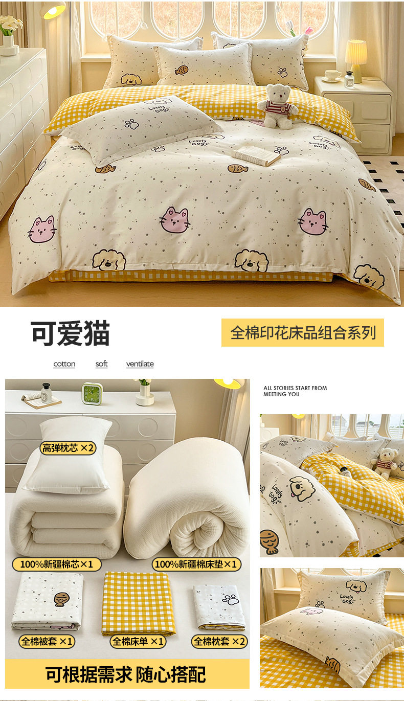 Four Seasons Pure Cotton Four-Piece Set 100 Cotton Category a Maternal and Infant Grade Bedding Sheets and Quilt Covers Cartoon Dormitory Three-Piece Set