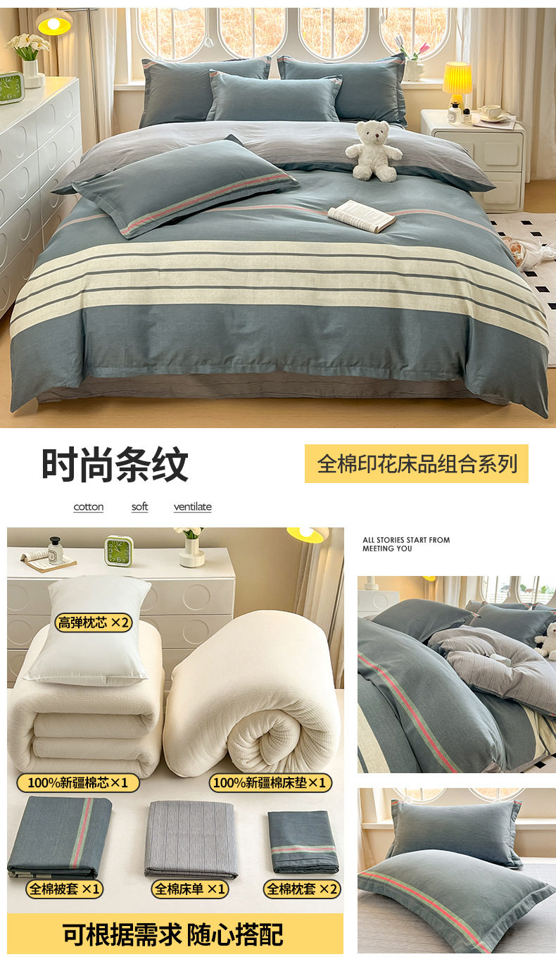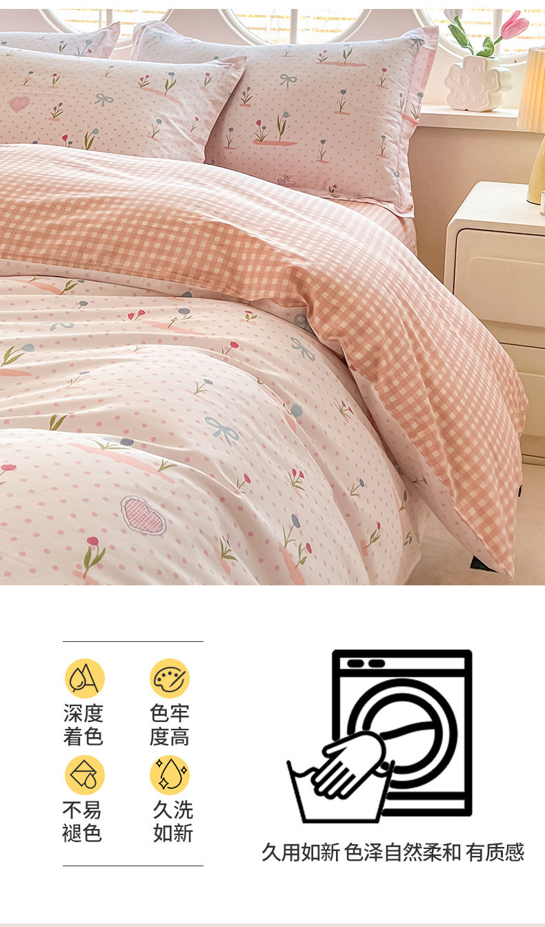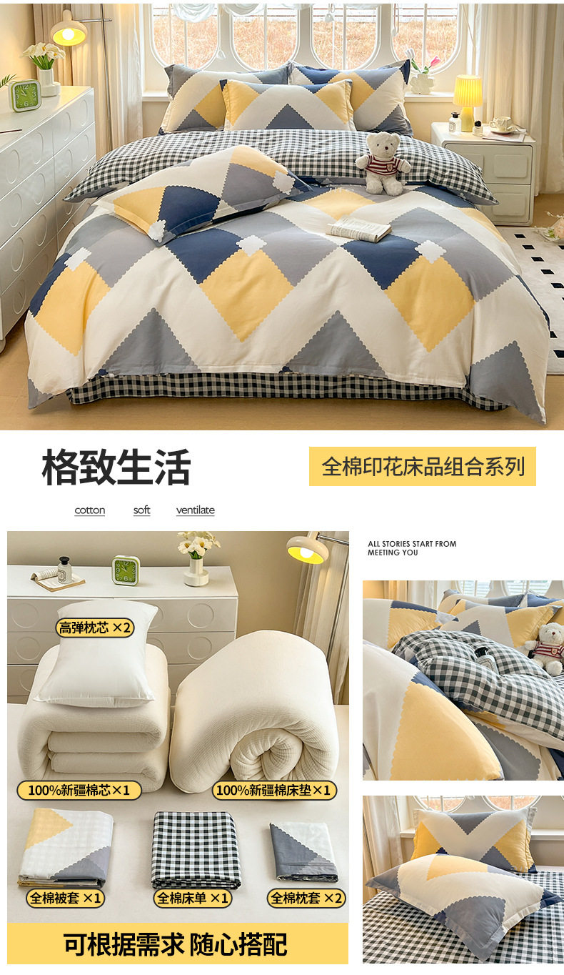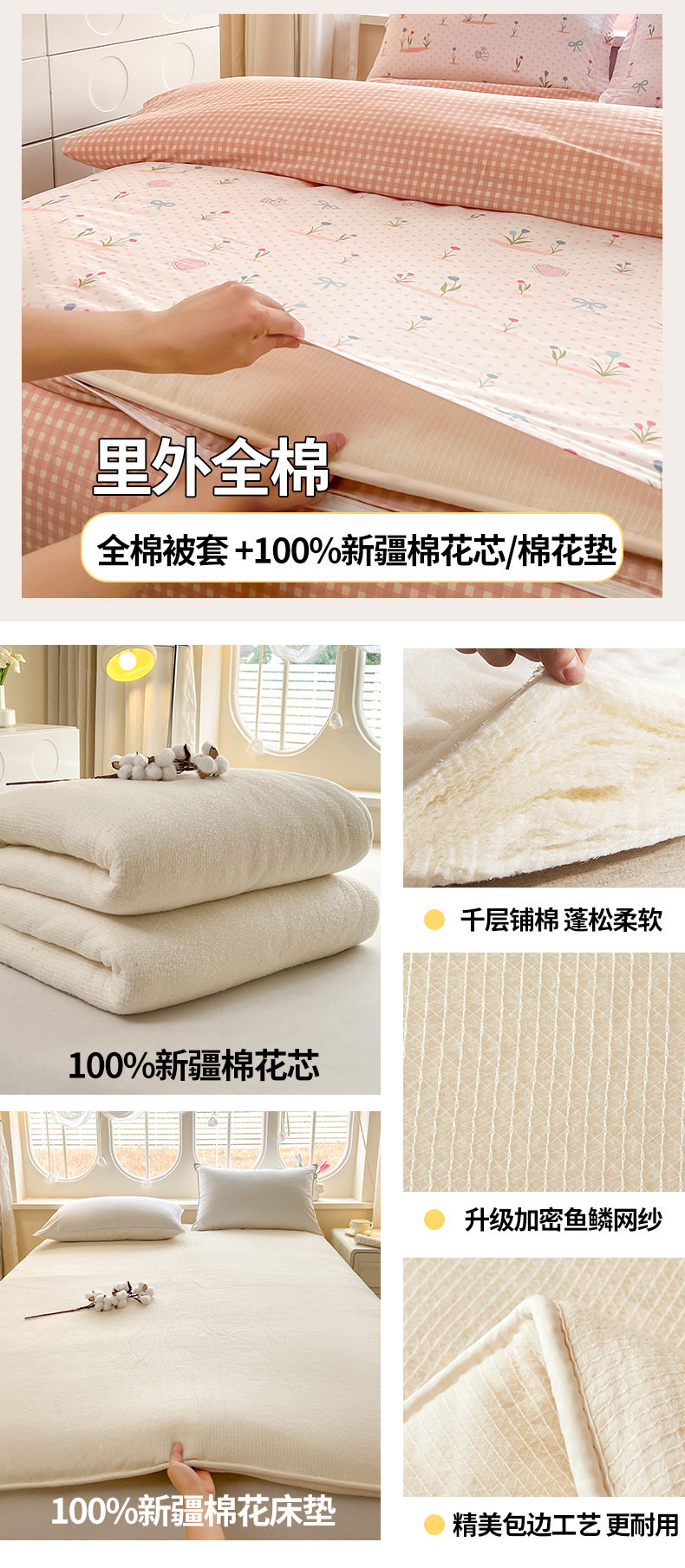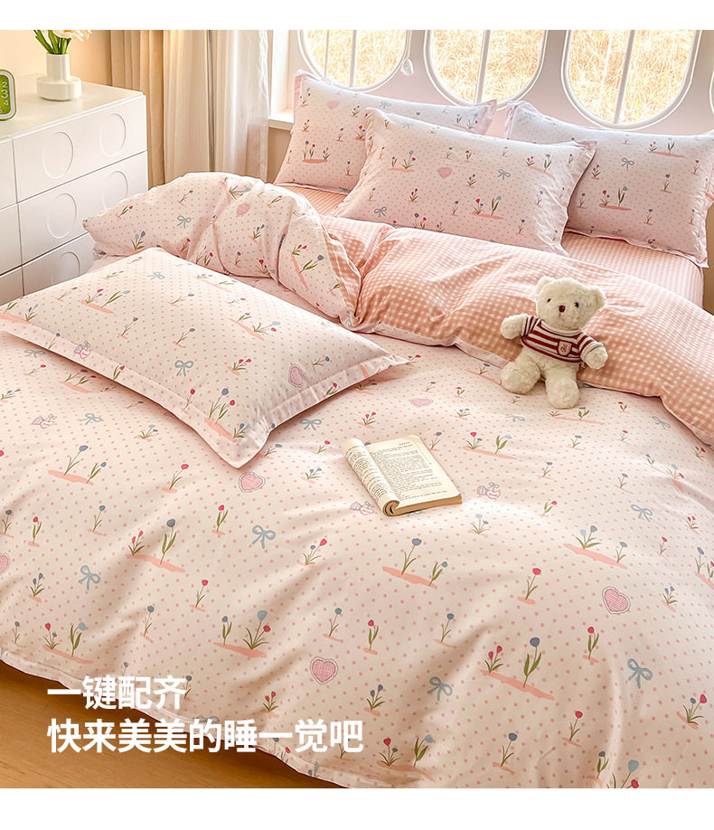 Four Seasons Pure Cotton Four-Piece Set 100 Cotton Category a Maternal and Infant Grade Bedding Sheets and Quilt Covers Cartoon Dormitory Three-Piece Set