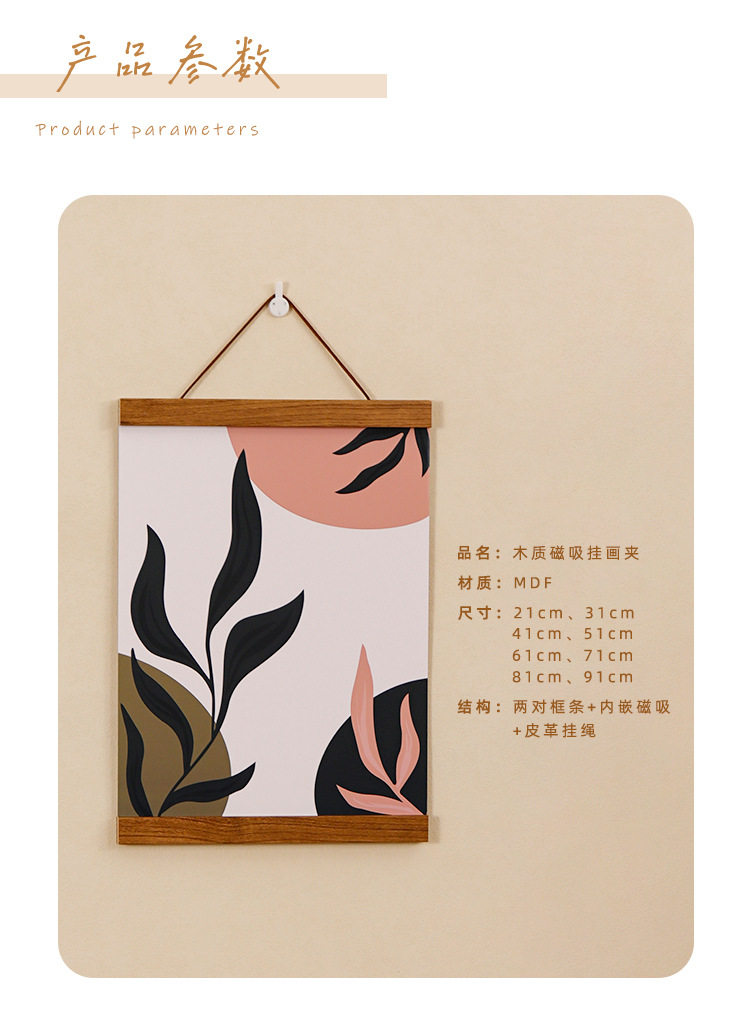 Handmade Wooden Magnetic Hanging Picture Frame Poster Display Photo Frame Calligraphy Painting Artwork Mounting Scroll Decoration