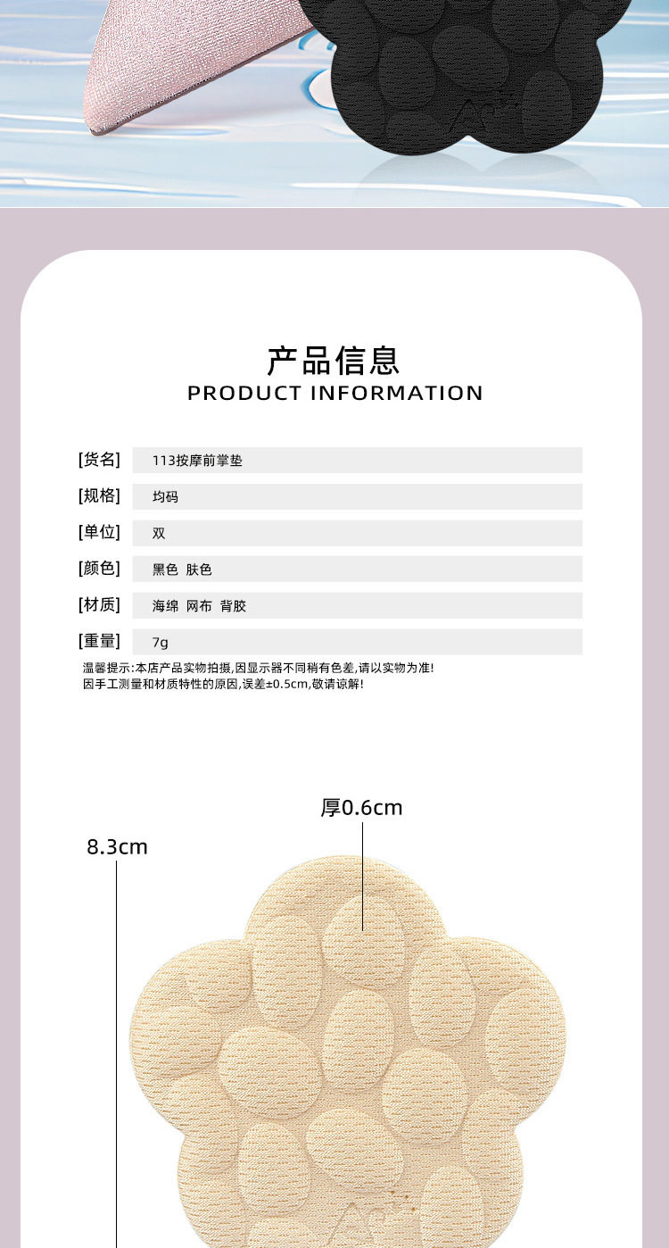 Forefoot Pad High Heels Forefoot Dance Bone Particle Massage Shock-Absorbing Half-Size Pad Sponge Soft Anti-Wear Foot Pad Leather Shoes