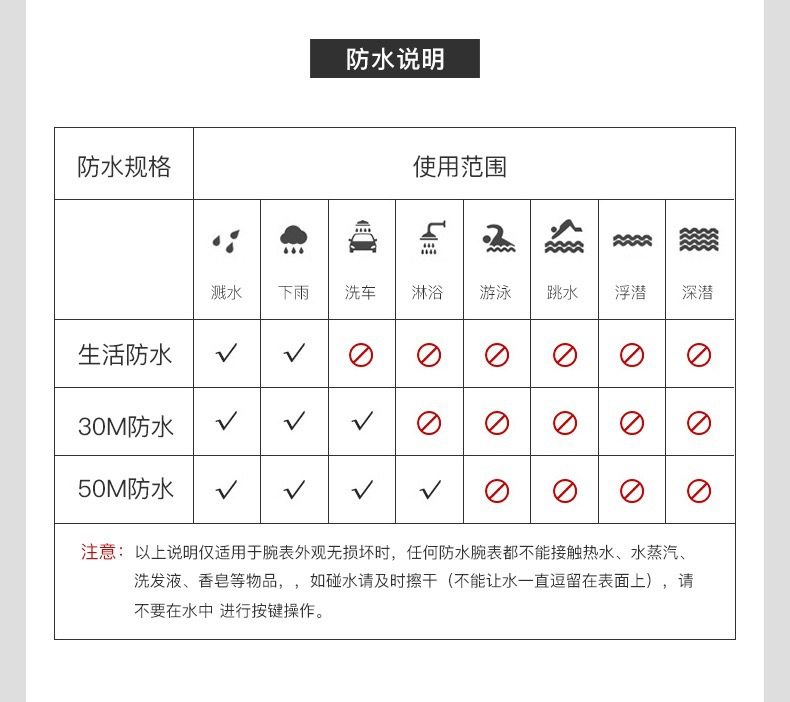 | Waterproof performance | 50 m |