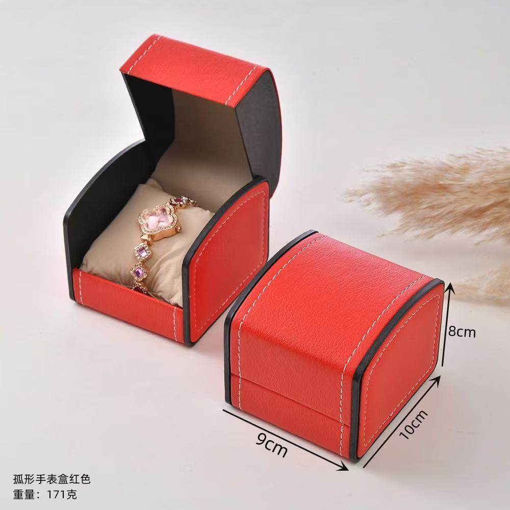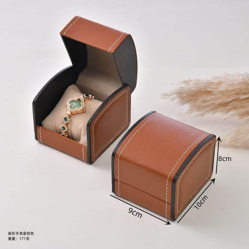 Ready Stock Pu Leather Jewelry Flip-Top Arched Watch Box Mechanical Watch Box Jewelry Box Bracelet Box