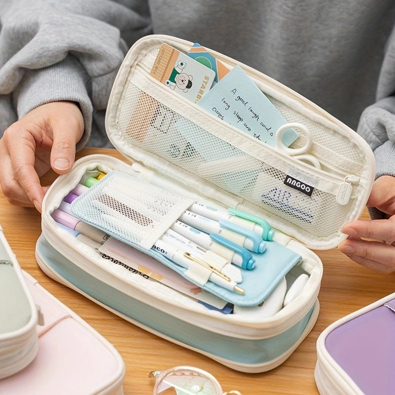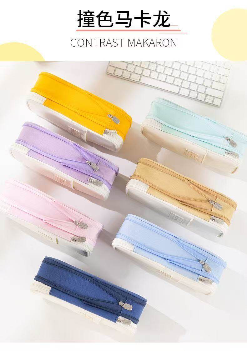 Large-Capacity Stain-Resistant Pencil Case Student Creative Stationery Storage Bag Macaron Color Matching Pencil Case Stationery Box