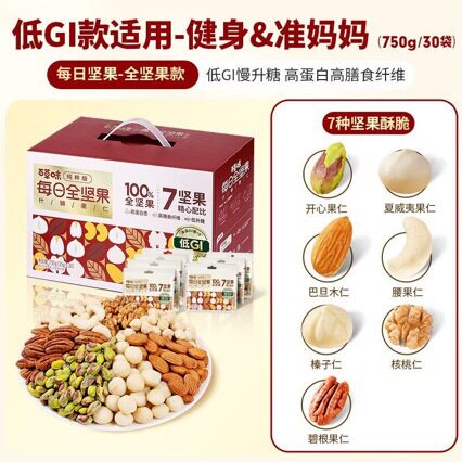 Baicaowei 7 Kinds of Pure Nuts Daily Mix Nuts 750g/30 Packs Mixed Whole Nuts Snacks for Gifting