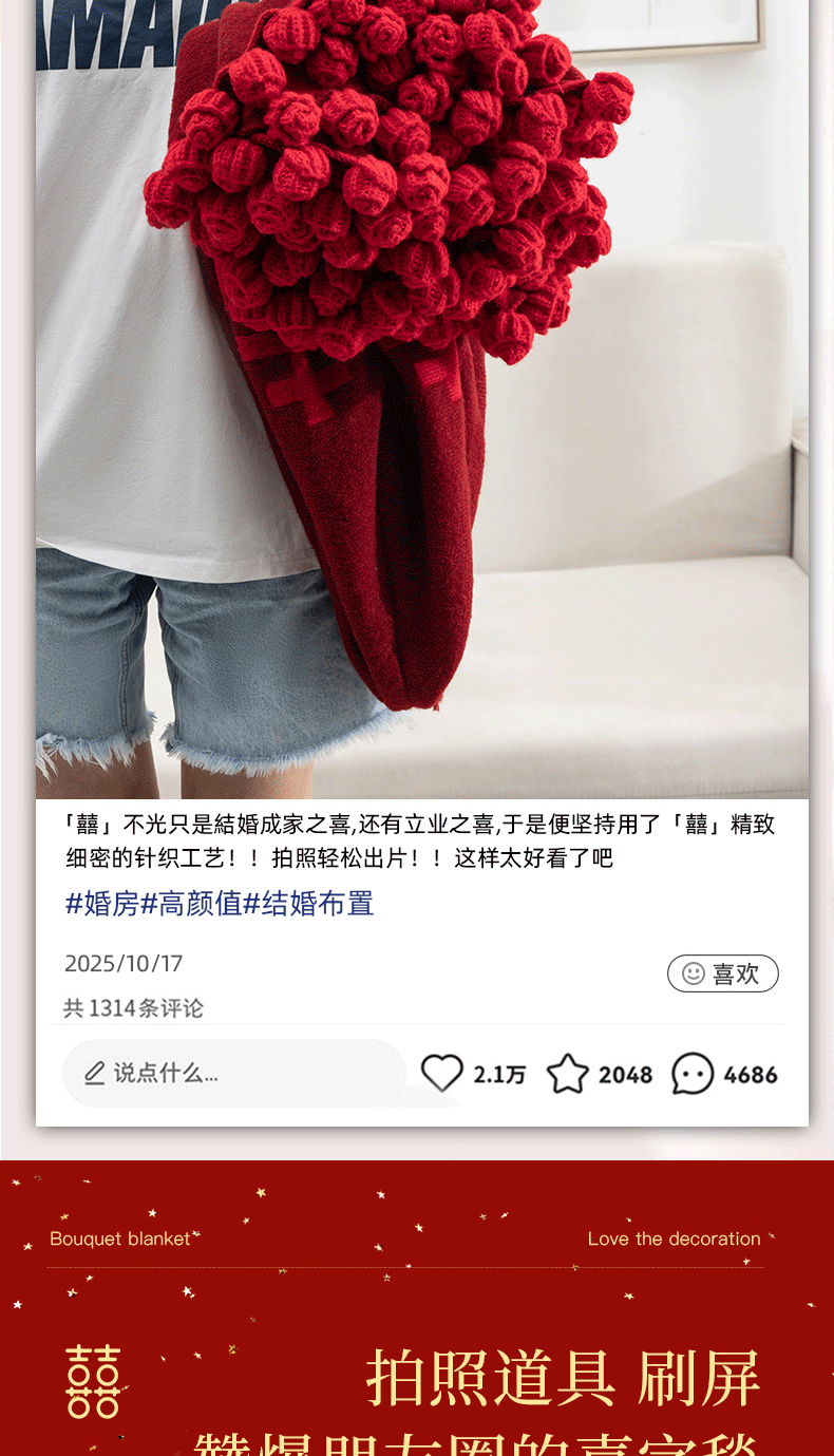 | Color | [chinese wedding] super high quality double layer red wedding bouquet blanket |