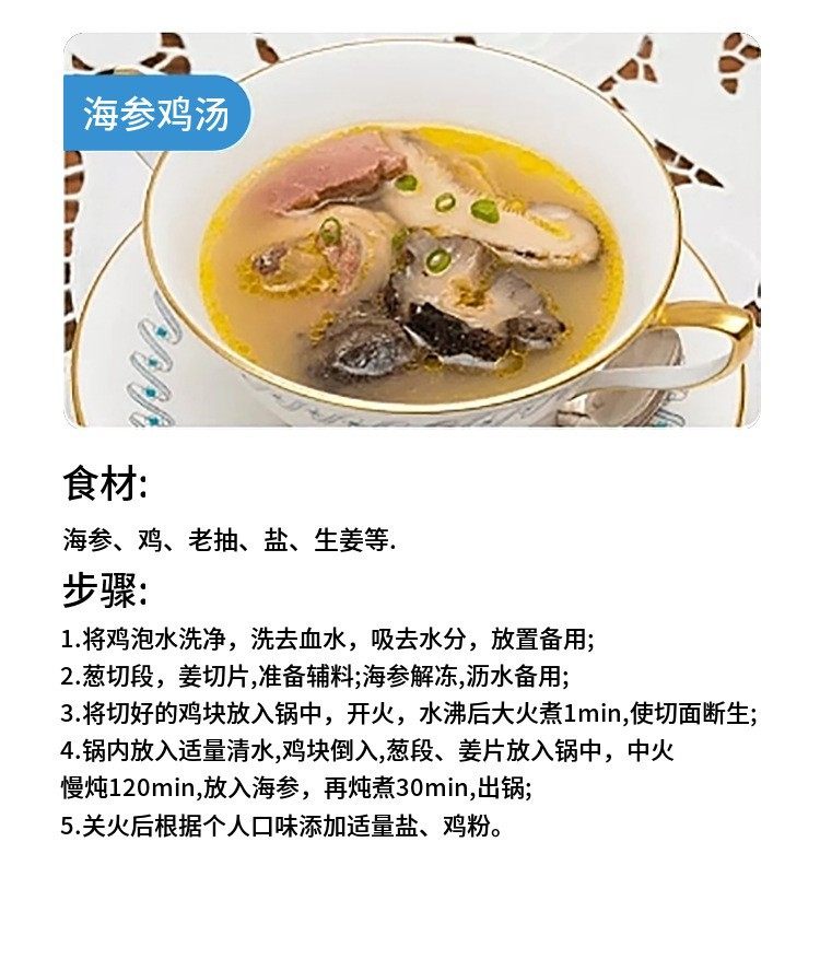 | Packaging specifications | Ready-to-eat sea cucumber, approximately 14-15 pieces per pack,Half a pound of lightly dried sea cucumber [about 30-40 heads],Dried sea cucumber 0.5kg pack [about 30-40 heads],Half a pound of dried sea cucumber gift box [free handbag] |