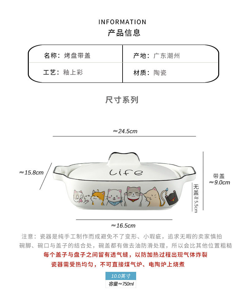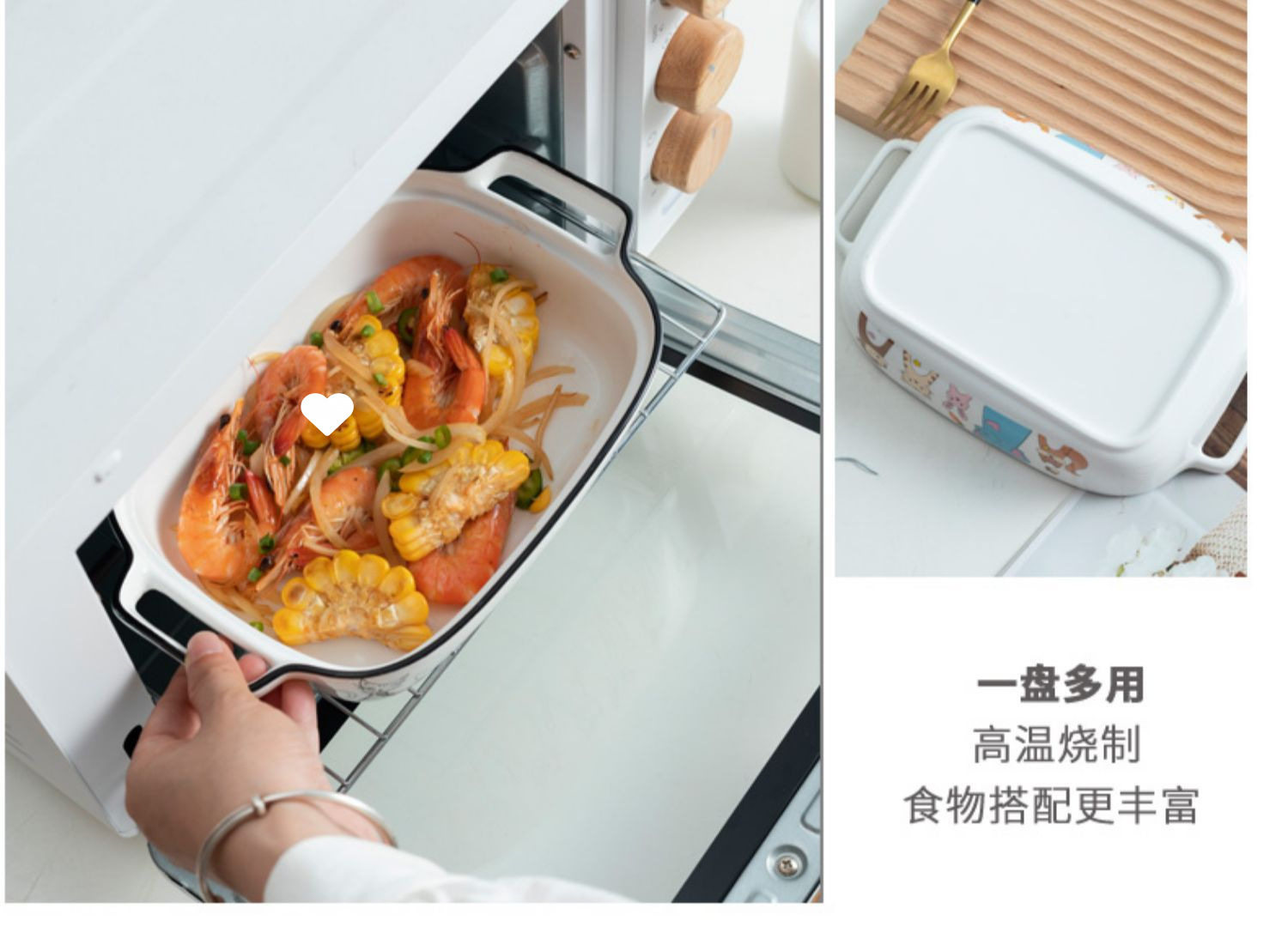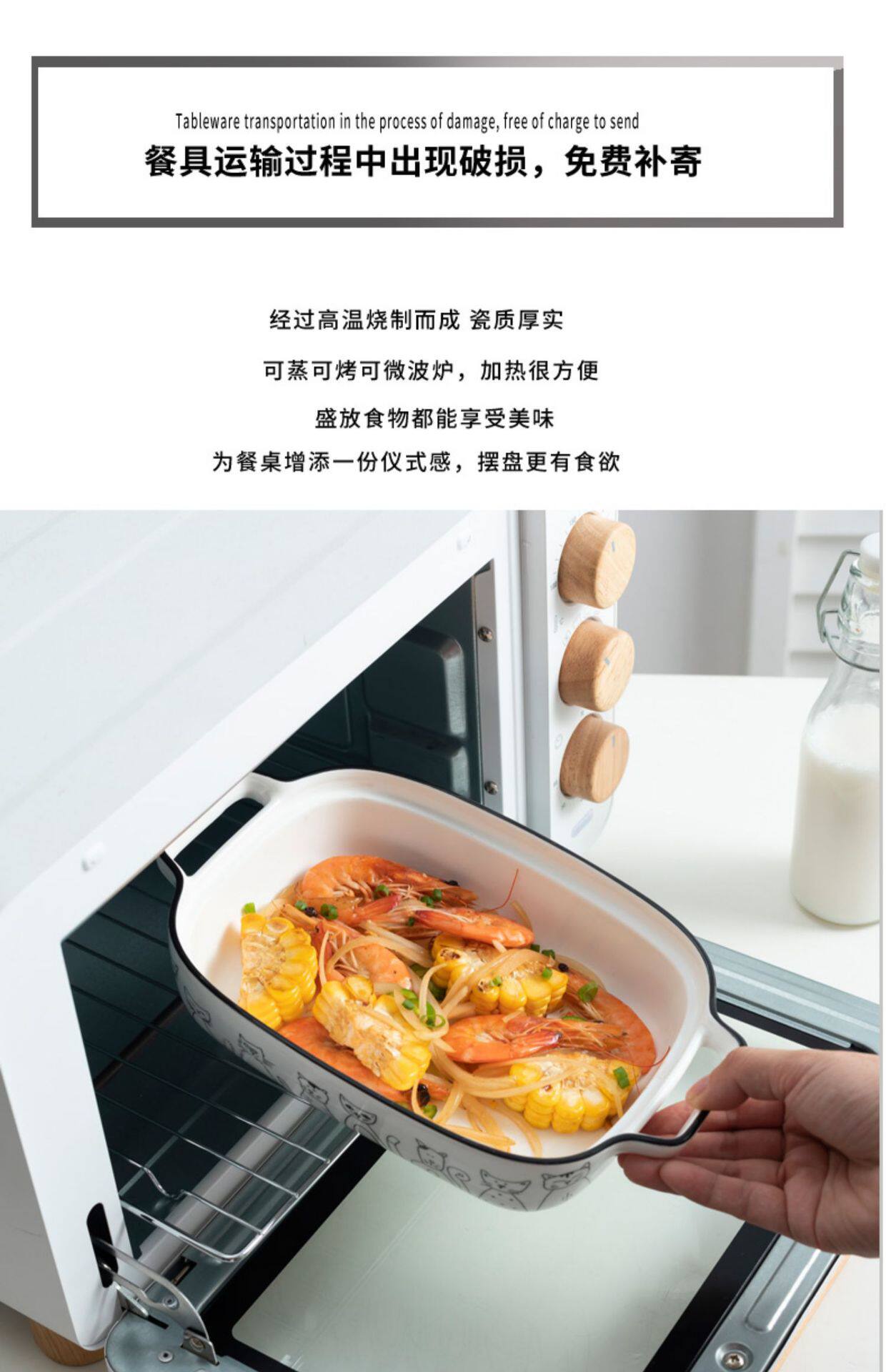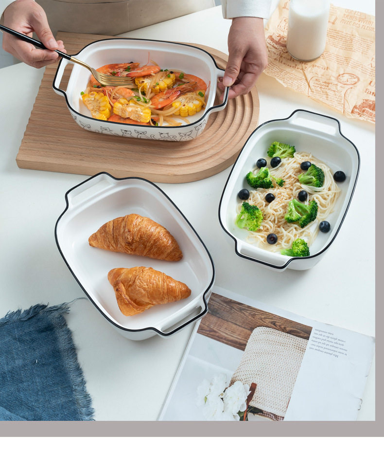 Baking Pan with Lid Cheese Baked Rice Bowl Ceramic Double-Eared Baking Bowl Microwave Oven Plate Rectangular Household Dish Plate