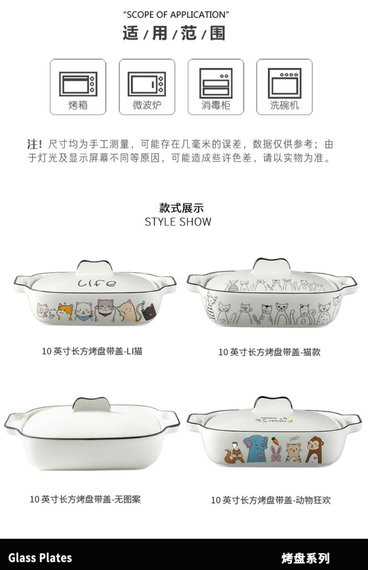 Color 10inch rectangular baking pan with lid-li mao,10inch rectangular baking pan with lid-cat style,10inch rectangular baking pan with lid-animal carnival,10inch rectangular baking pan with lid - no pattern,10inch rectangular baking pan with lid-heartbeat