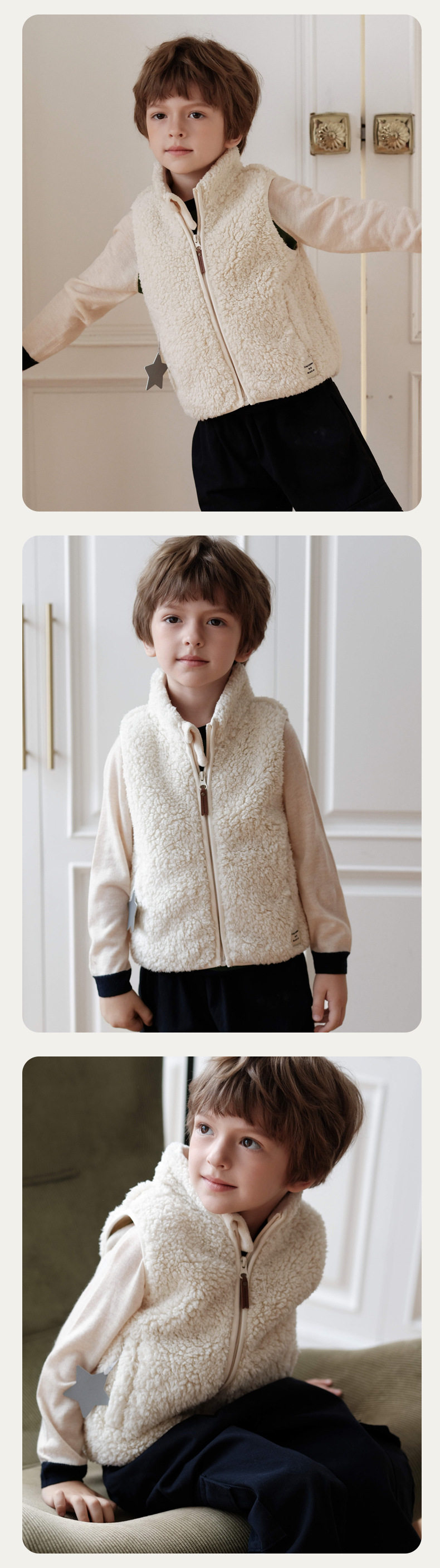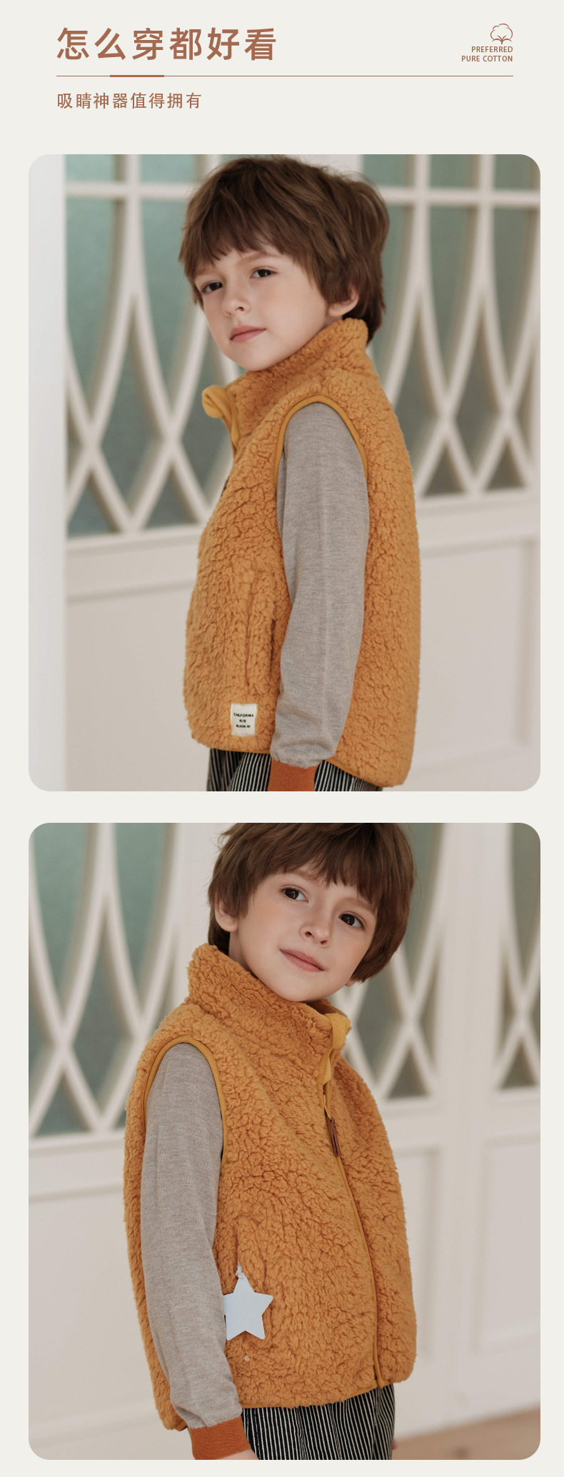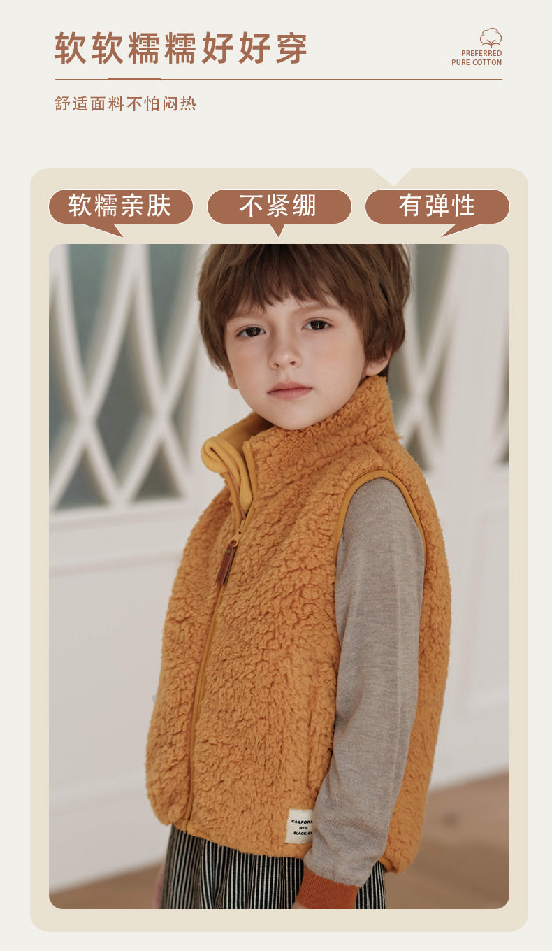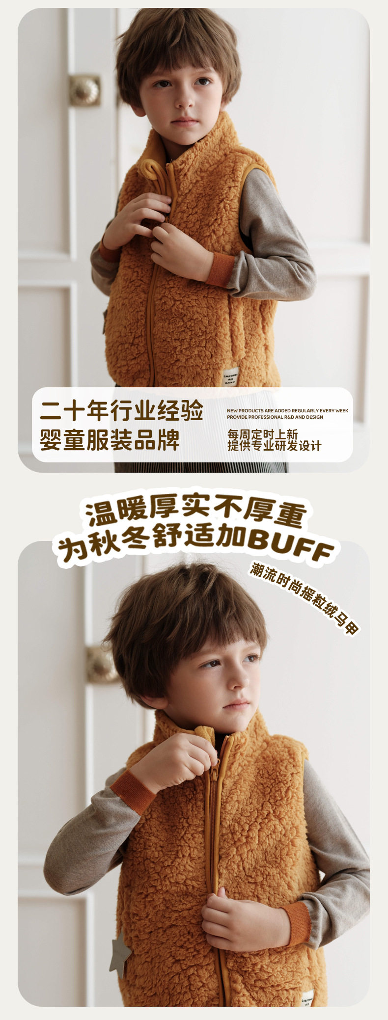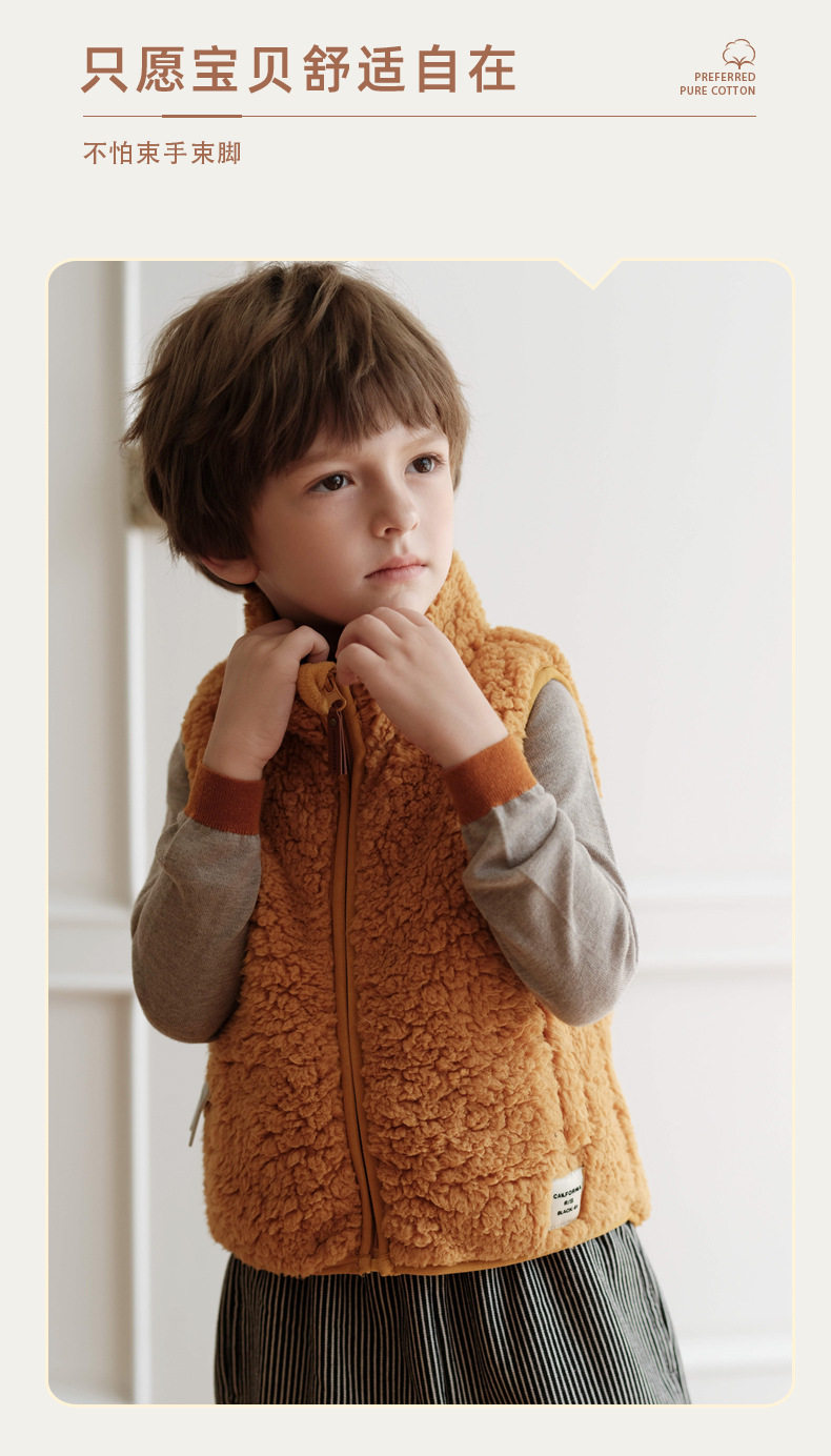 Children's Vest Autumn and Winter New Polar Fleece Stand-Up Collar Vest Warm Zipper Versatile Sleeveless Vest for Boys and Girls