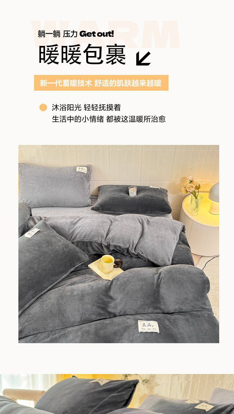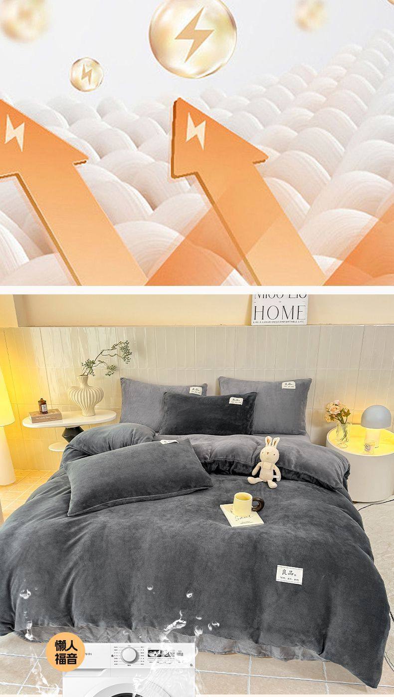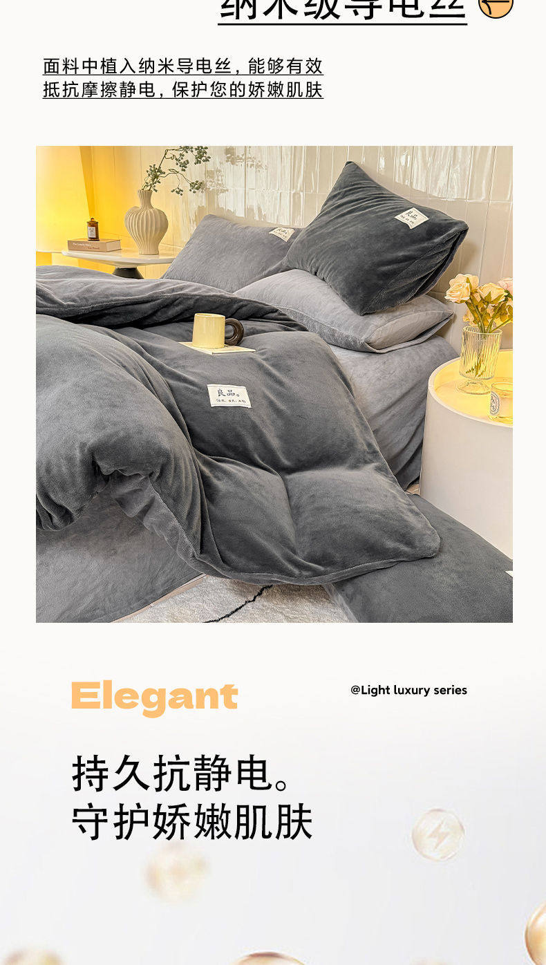 Thickened Milk Velvet Four-Piece Set, Winter Warm Flannel Fleece-Lined Double-Sided Three-Piece Bed Bed Sheets Quilt Cover, Maternal and Infant Grade