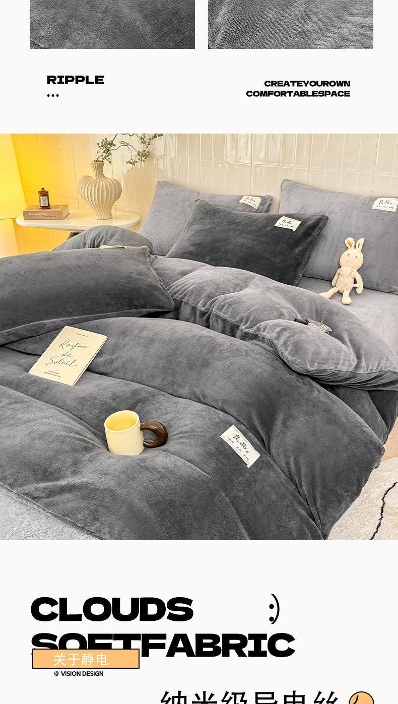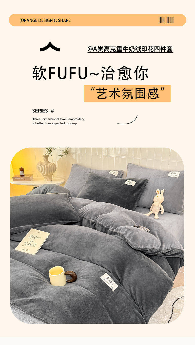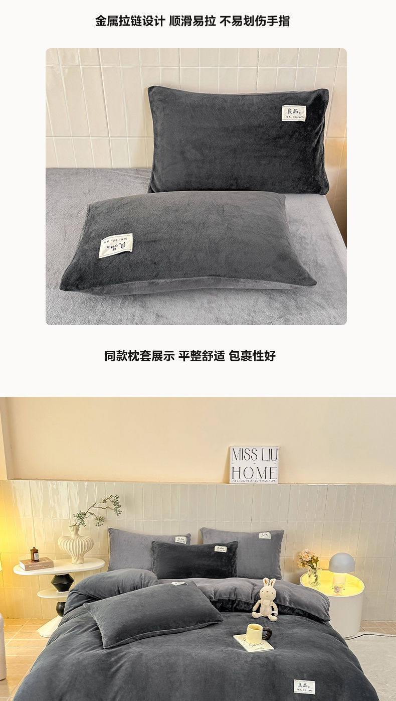 Thickened Milk Velvet Four-Piece Set, Winter Warm Flannel Fleece-Lined Double-Sided Three-Piece Bed Bed Sheets Quilt Cover, Maternal and Infant Grade