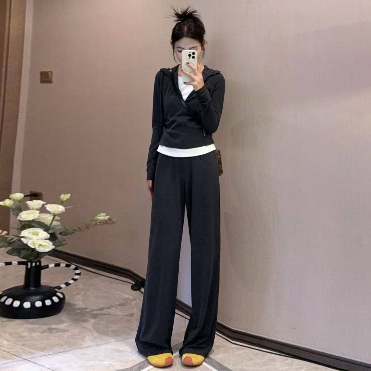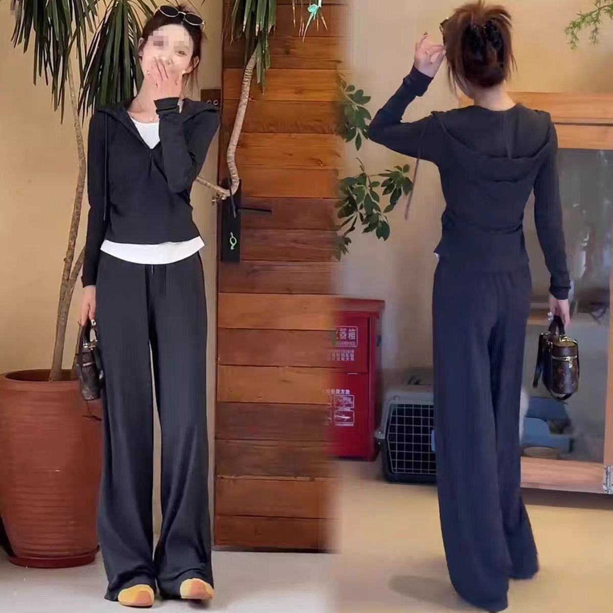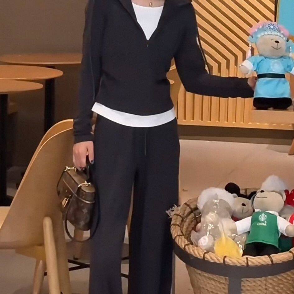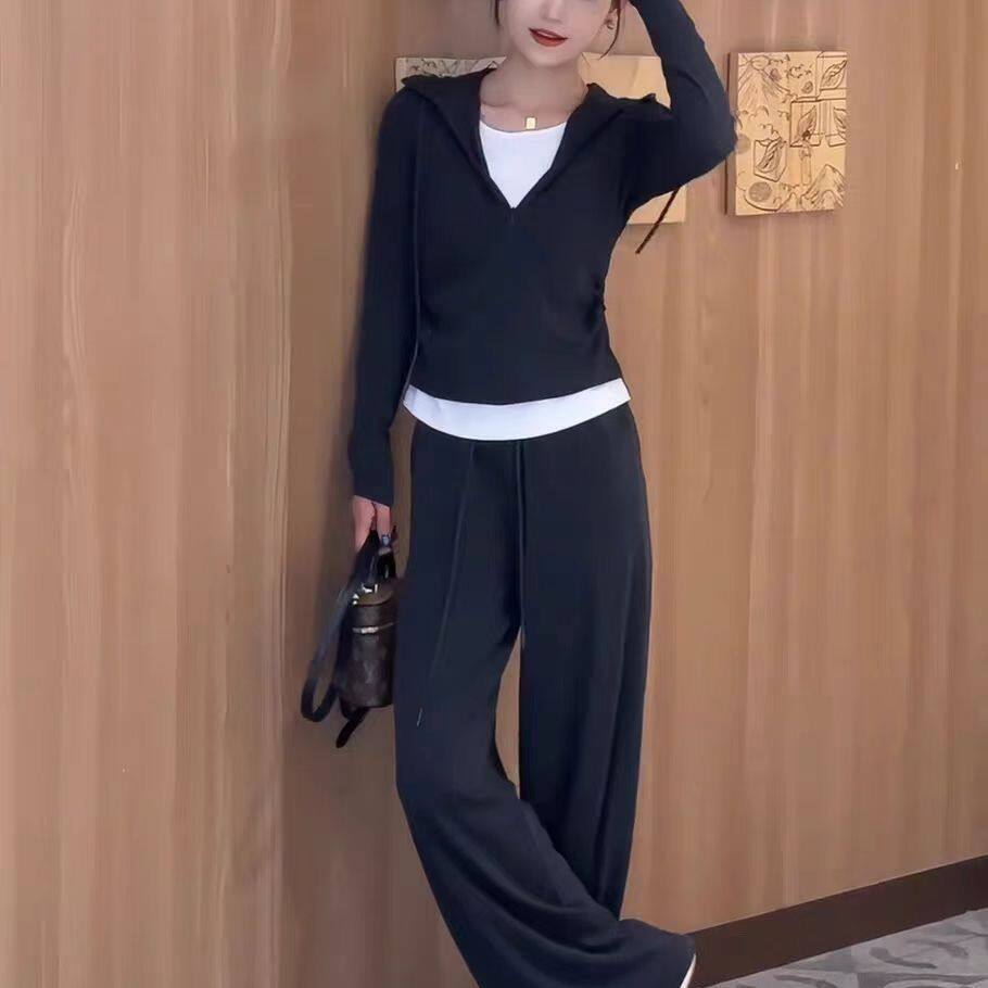 Fashion Casual Women's Suit Autumn 2025 New Fake Two-Piece Slimming Age-Reducing Hooded Sweatshirt Long Pants Two-Piece Set