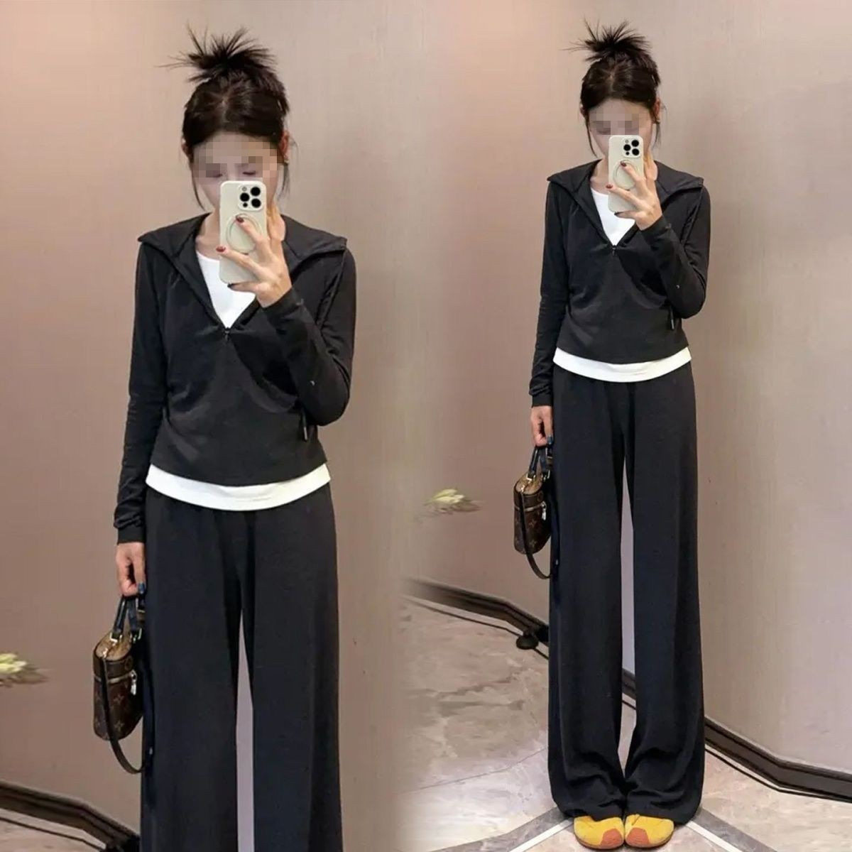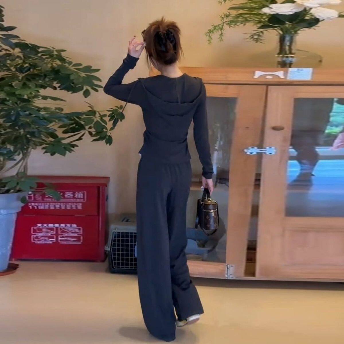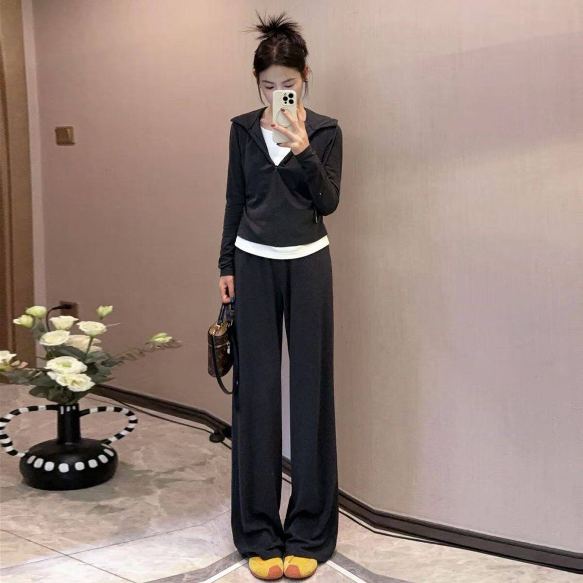 Fashion Casual Women's Suit Autumn 2025 New Fake Two-Piece Slimming Age-Reducing Hooded Sweatshirt Long Pants Two-Piece Set