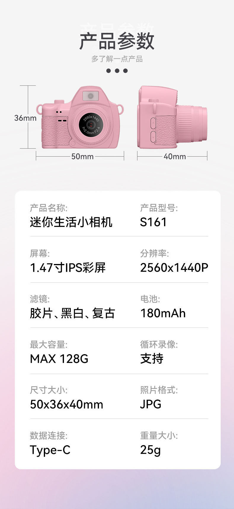 | Data interface | Type-c 5pin usb |
