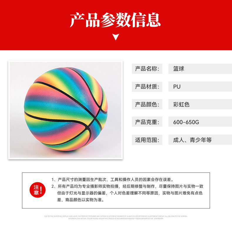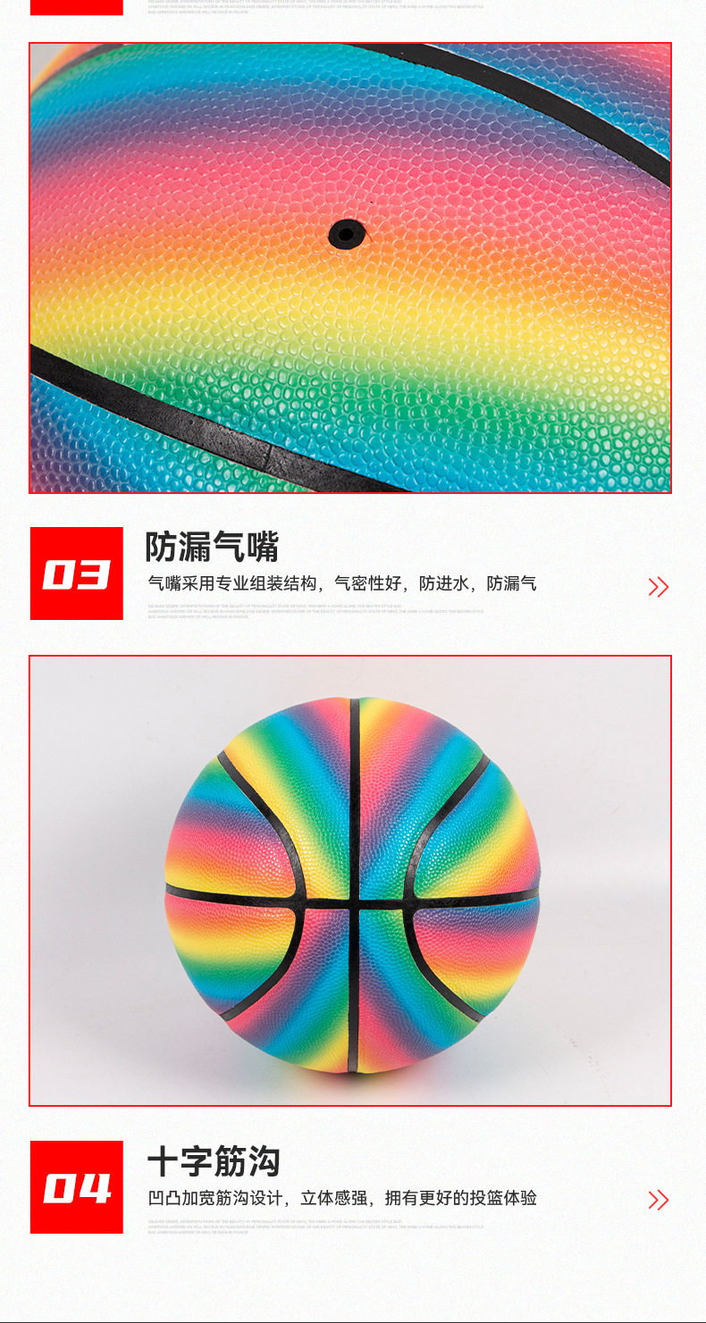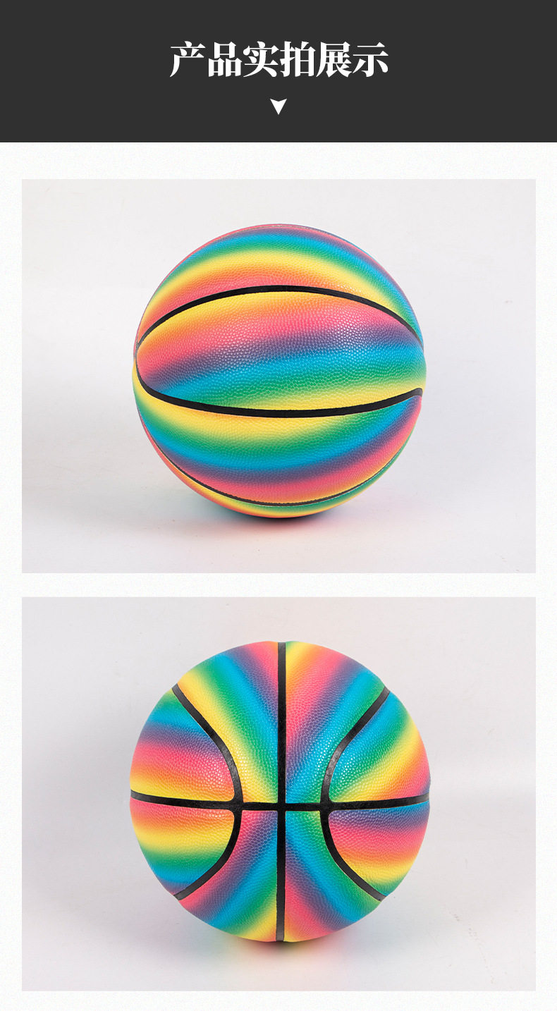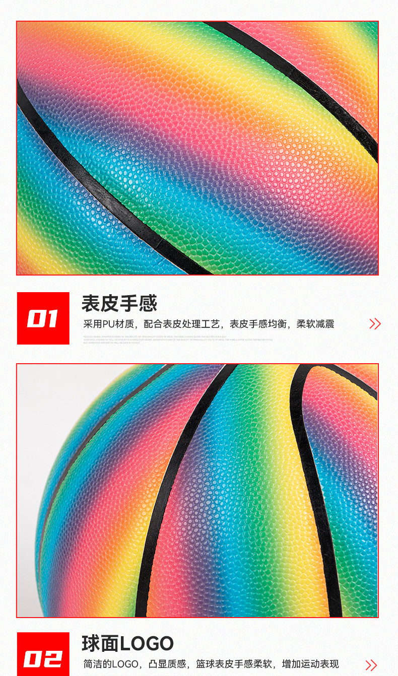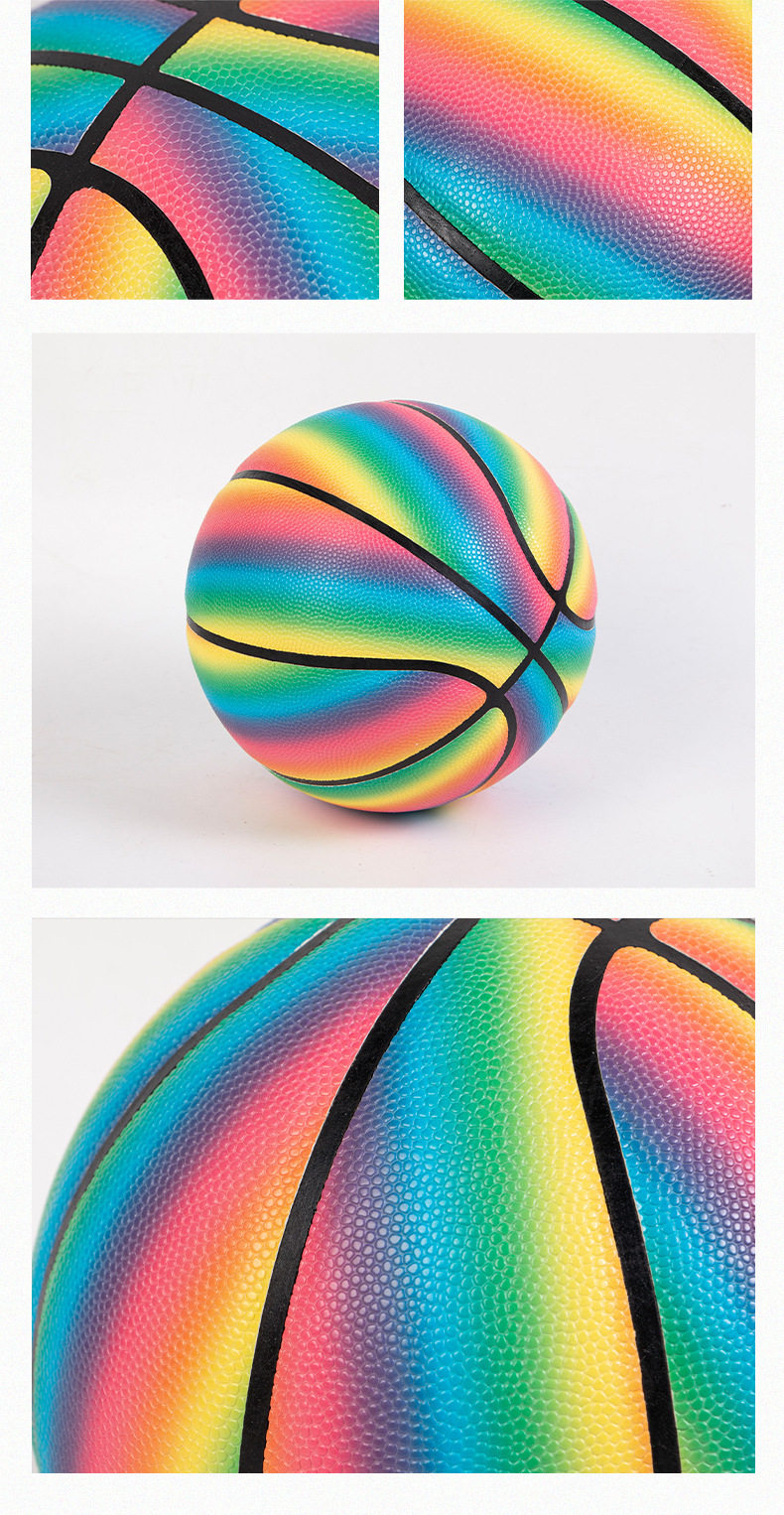 Basketball No. 5 Flower Color Rainbow Ball Indoor and Outdoor Pu Wear-Resistant Moisture-Absorbent Youth and Kidsren's Small Basketball Can Be Wholesaled