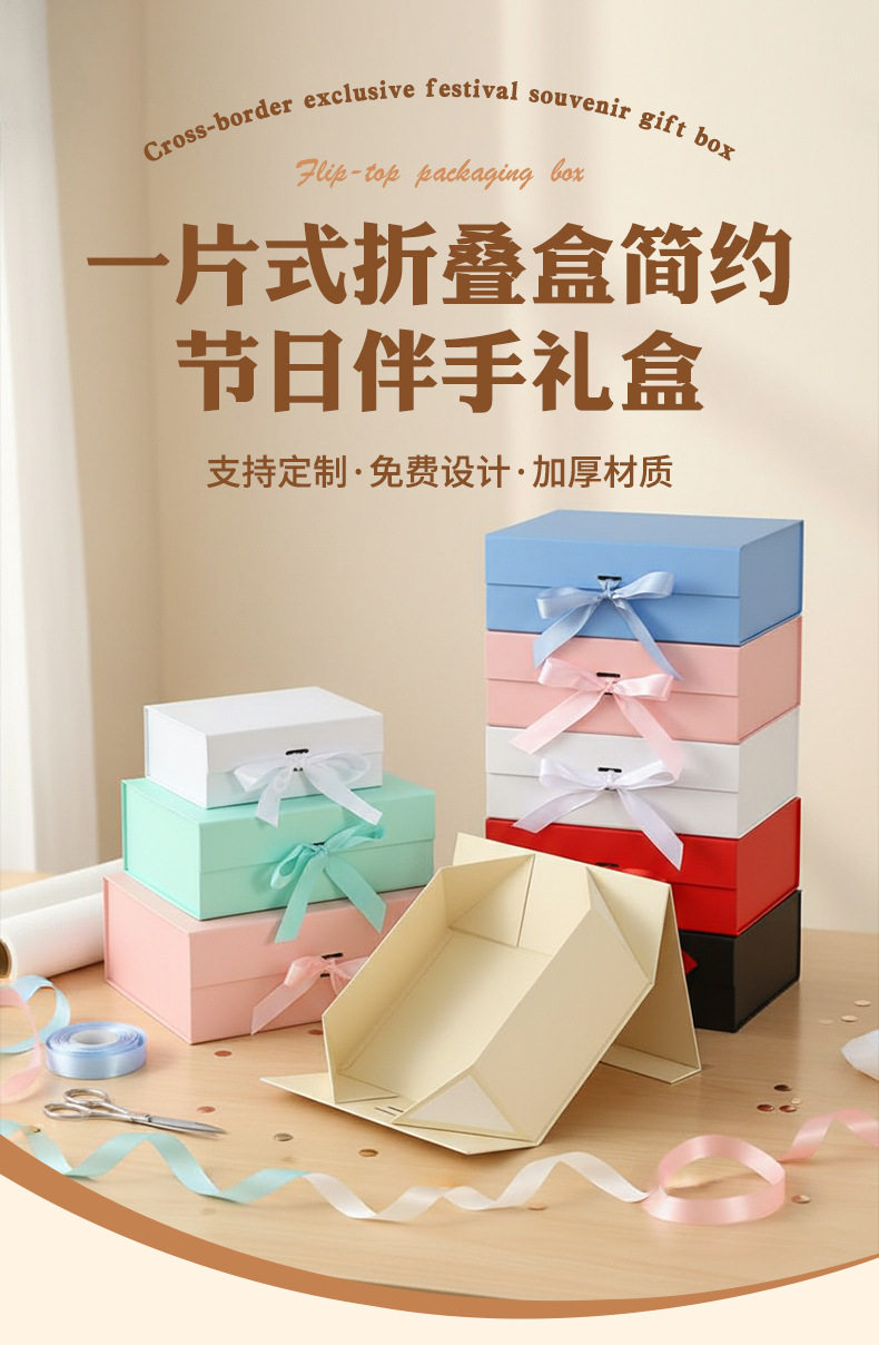 Cross-Border Supply of One-Piece Folding Box, Simple Holiday Gift Box, Cardboard Flip-Top Packaging Box, Storage Box