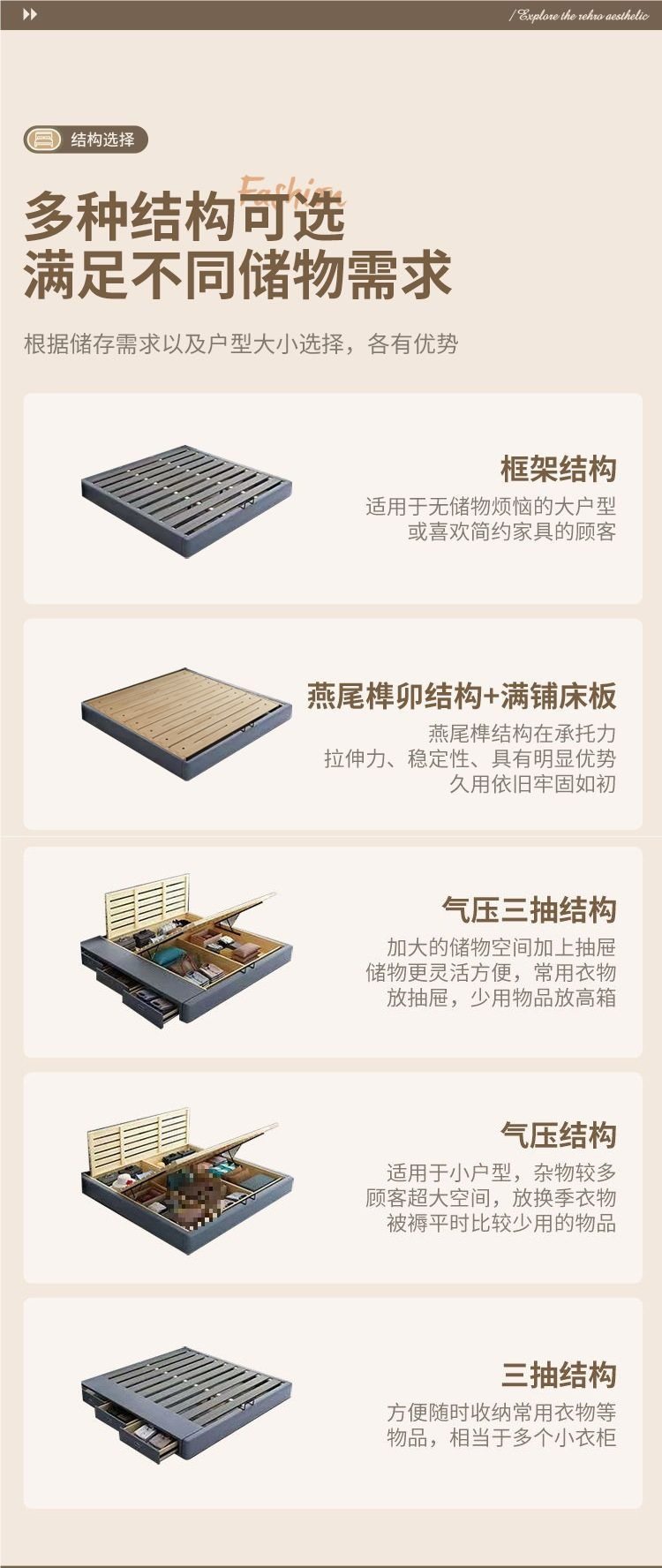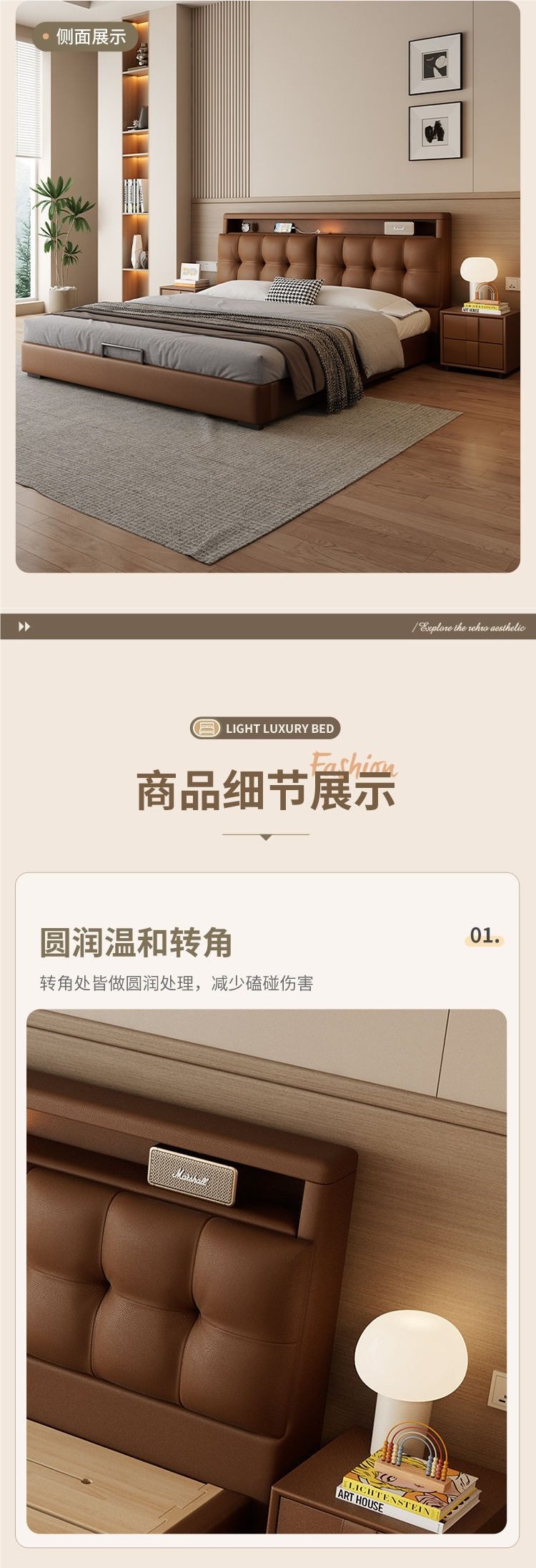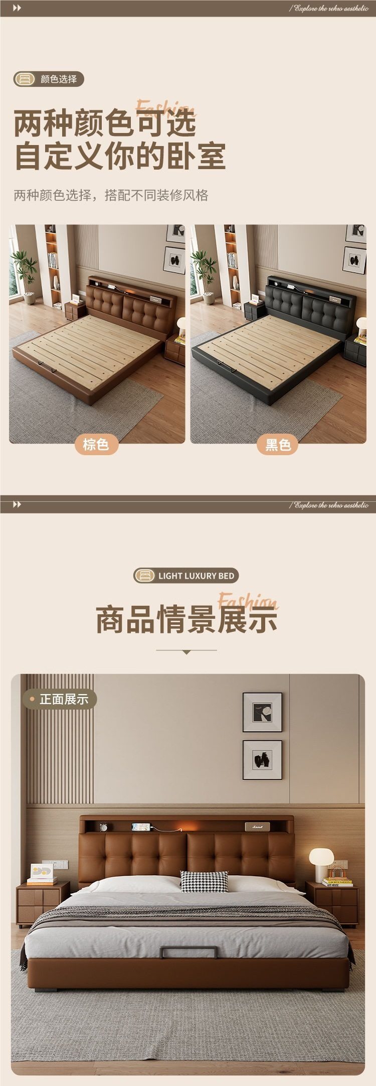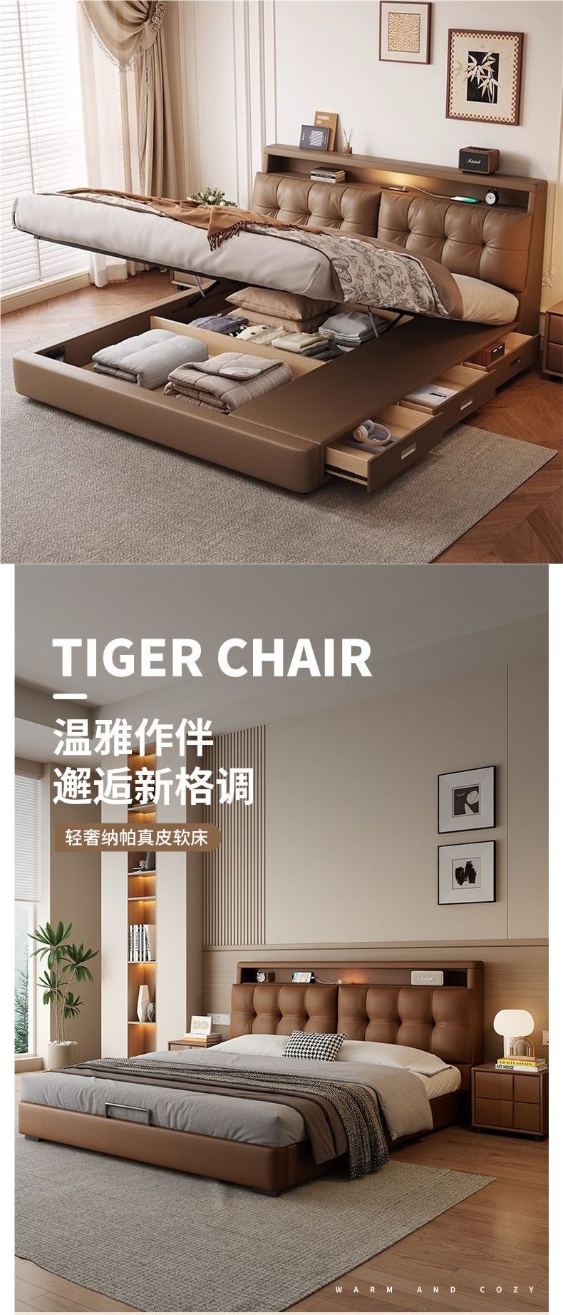 Multifunctional Bed Modern Minimalist Master Bedroom 1.8 Soft Bag Bed Atmospheric Italian Bedside Storage Drawer Wedding Bed