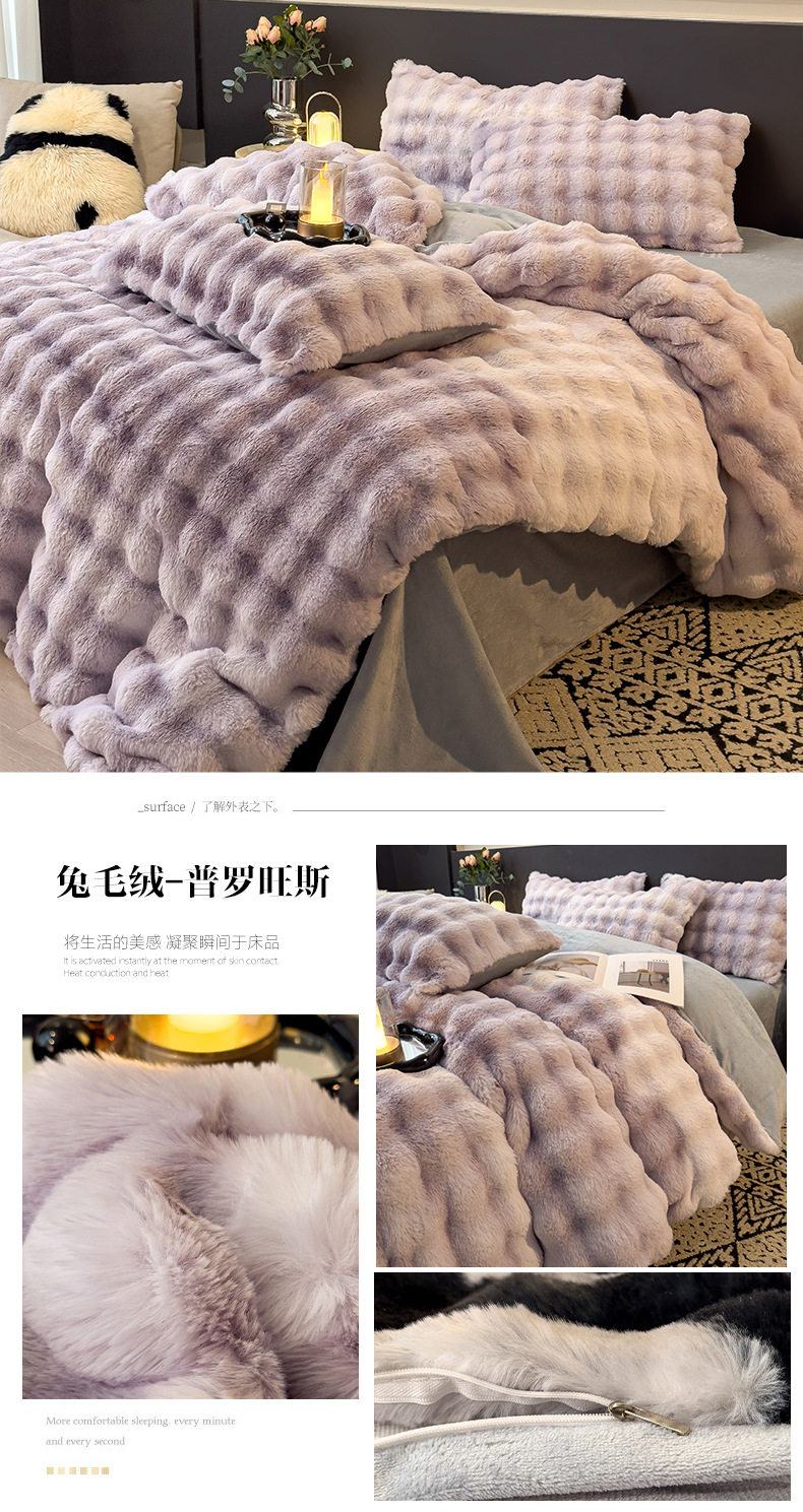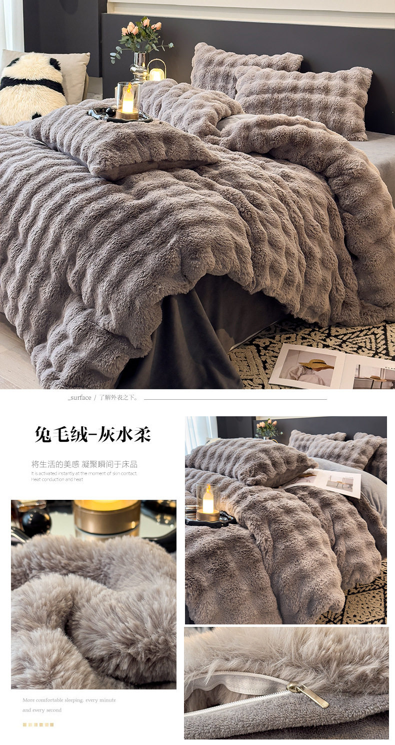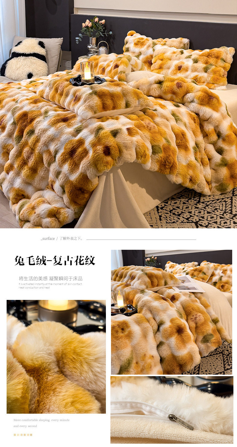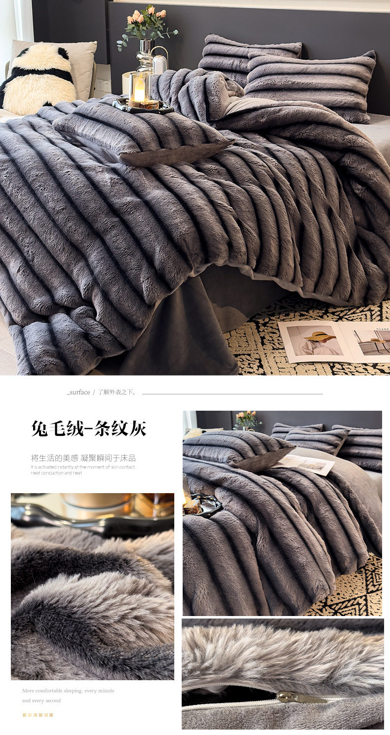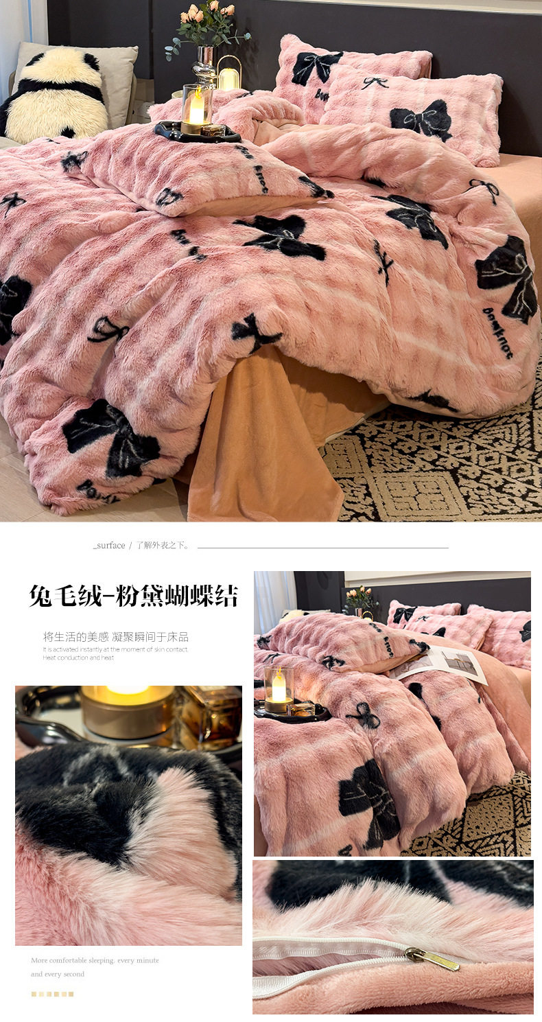 Thickened High-Weight Rabbit Plush Four-Piece Set Milk Velvet Class a Maternal and Infant Grade Autumn and Winter Warm Fleece-Lined Bed Bed Sheetss and Quilt Covers