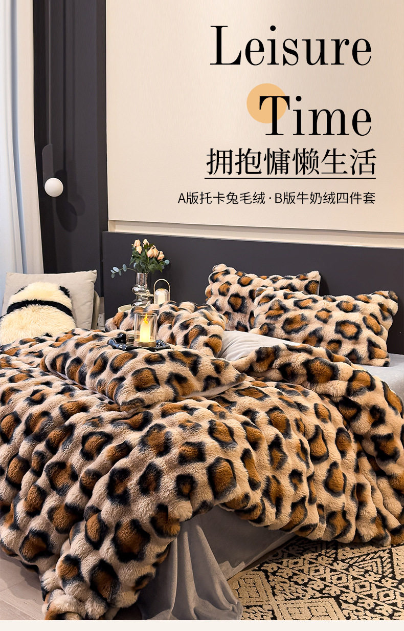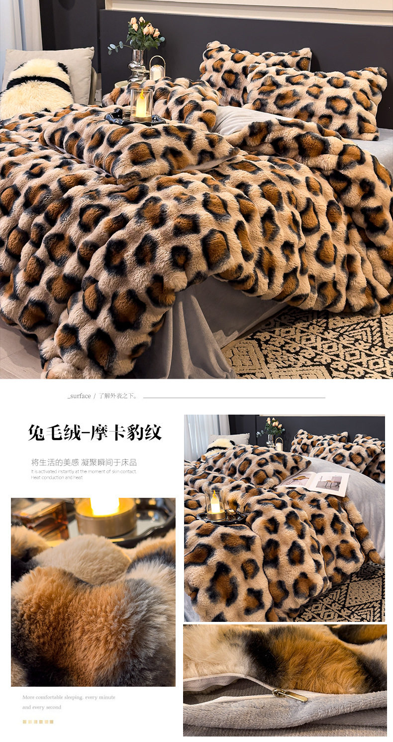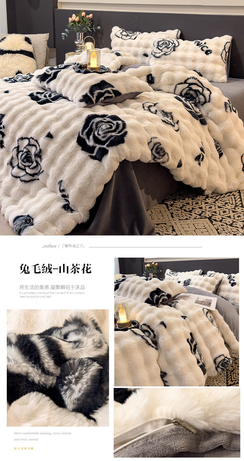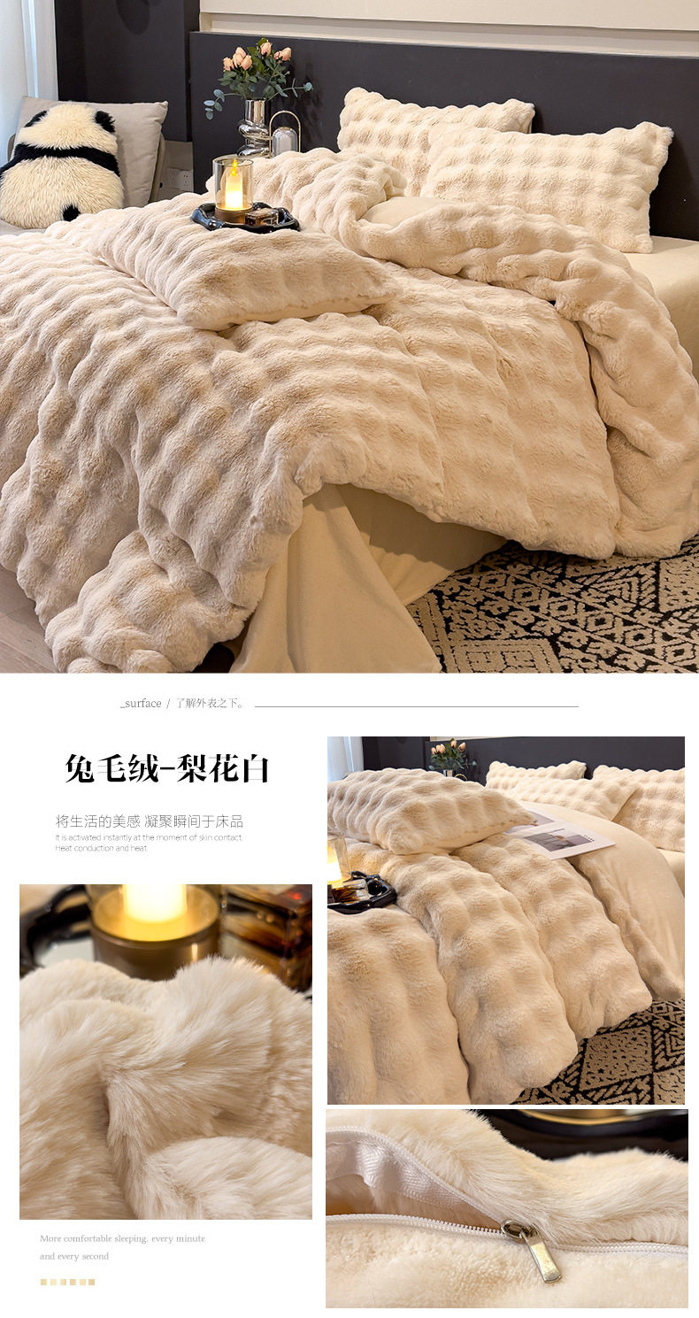 Thickened High-Weight Rabbit Plush Four-Piece Set Milk Velvet Class a Maternal and Infant Grade Autumn and Winter Warm Fleece-Lined Bed Bed Sheetss and Quilt Covers